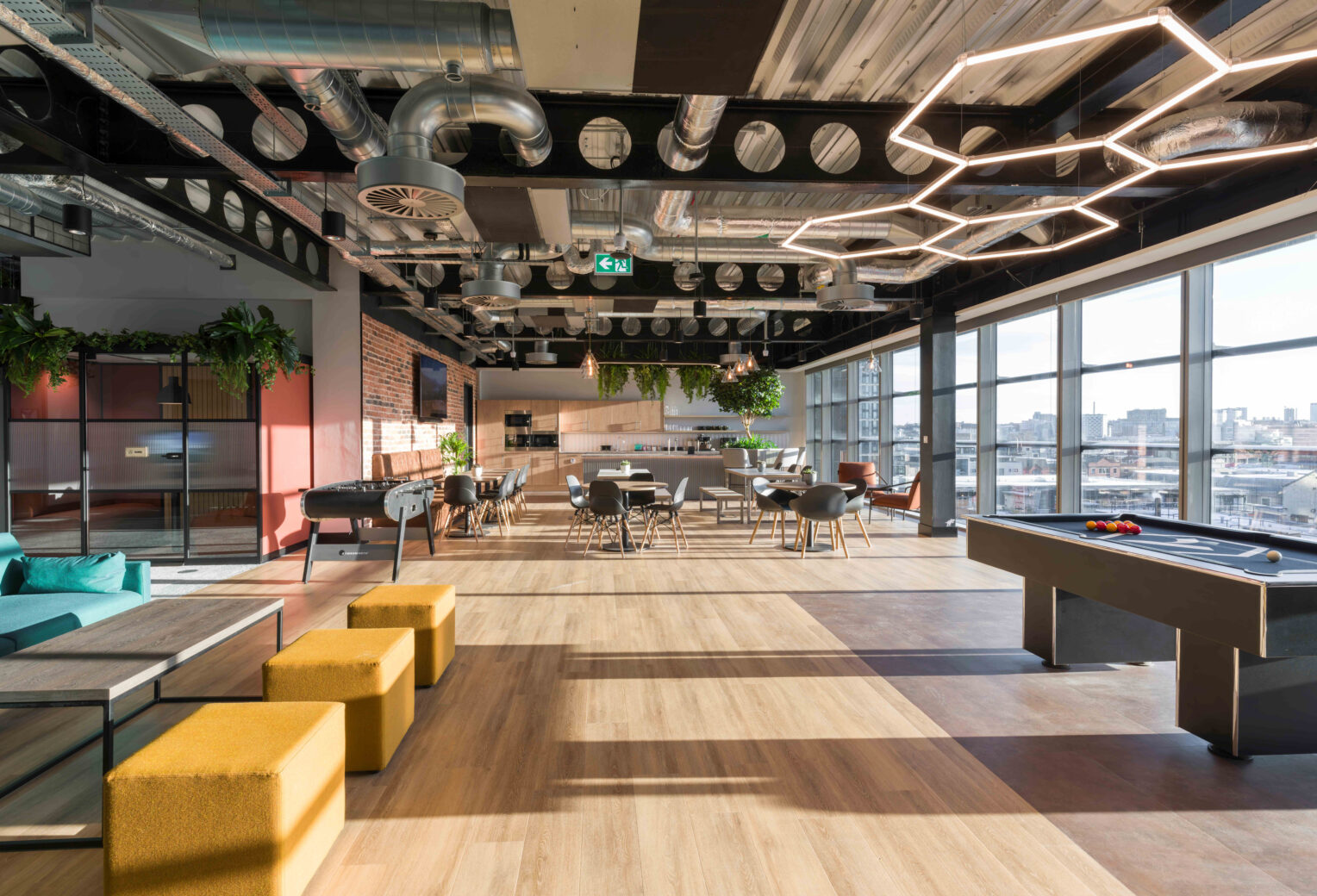 Following the completion of Avalanche Studio Group’s first UK office, the firm collaborated with Overbury again for their new space in Liverpool’s St Paul’s development. The new environment emphasises people, with a design inspired by nature, featuring large-scale wall graphics. It caters to the needs of a young, expanding team, including neurodivergent team members, with features such as controllable lighting and acoustics. An audio room allows for sound testing, and a play test room for game designers to experiment with new ideas. A folding wall adds flexibility for Town Hall meetings or client events, and a large auditorium is included for presentations.