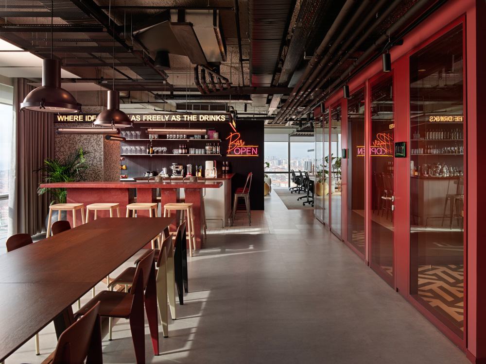 Park Studio, in collaboration with Ucadam, designed Gram Games’ Istanbul office, creating a dynamic environment that integrates the company’s creative ethos with functional design. Reflecting the philosophy that great teams are built through talent and a great workspace, the office embodies collaboration, comfort and innovation. Inspired by industrial elements like brick, wood and concrete, the design modernises these features to create a youthful, fresh atmosphere. Tactile materials add warmth and depth, fostering creativity and collaboration while meeting the needs of a productive workspace.
