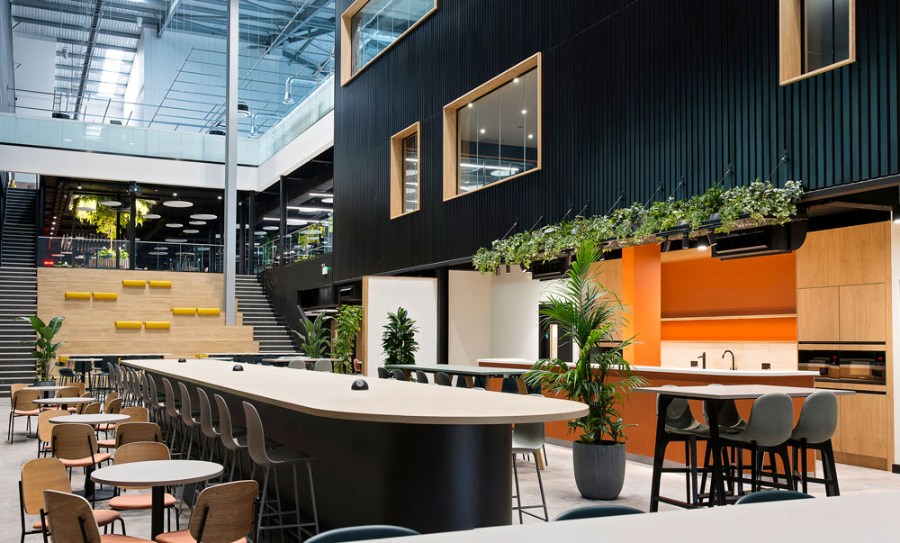 This scheme creates a brand new HQ workspace in the heart of The Fragrance Shop’s new distribution warehouse in Trafford. The project set out to prove that a large industrial shed could be a desirable place to work for staff providing a stimulating environment with state of the art amenities that enhance employee wellbeing.