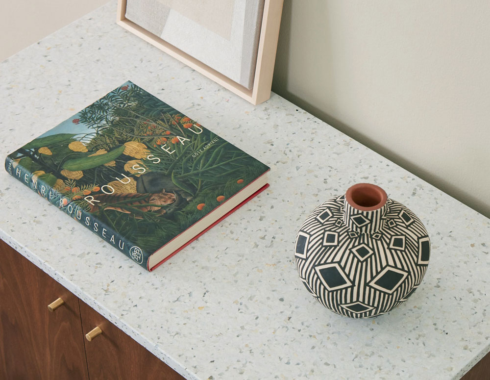 Smile Plastics work to challenge peoples’ perceptions about ‘waste’ and the system that creates it. They have elevated a humble material – the staple kitchen fixtures we use every day – from waste to wonder. Heron’s make-up provides a subtle and creative nod to the part it plays in the circular lifecycle that our built environment’s future crucially relies on. The subtle colour palette makes Heron incredibly versatile for various environments, from retail to hospitality and any sustainability- conscious commercial schemes. With layered feathery soft grey tones, a smattering of yellow hues, warm ochre flecks, black and blizzard white, it’s hard to imagine that Heron came from humble beginnings. But, in fact, it was created from the staple kitchen fixtures we use every day. Would-be discarded white goods make up the foundations of the Heron mix, bringing a unique aesthetic and colour palette that is less reminiscent of its original material make-up and more alike the appearance of the statuesque bird after which it was named.