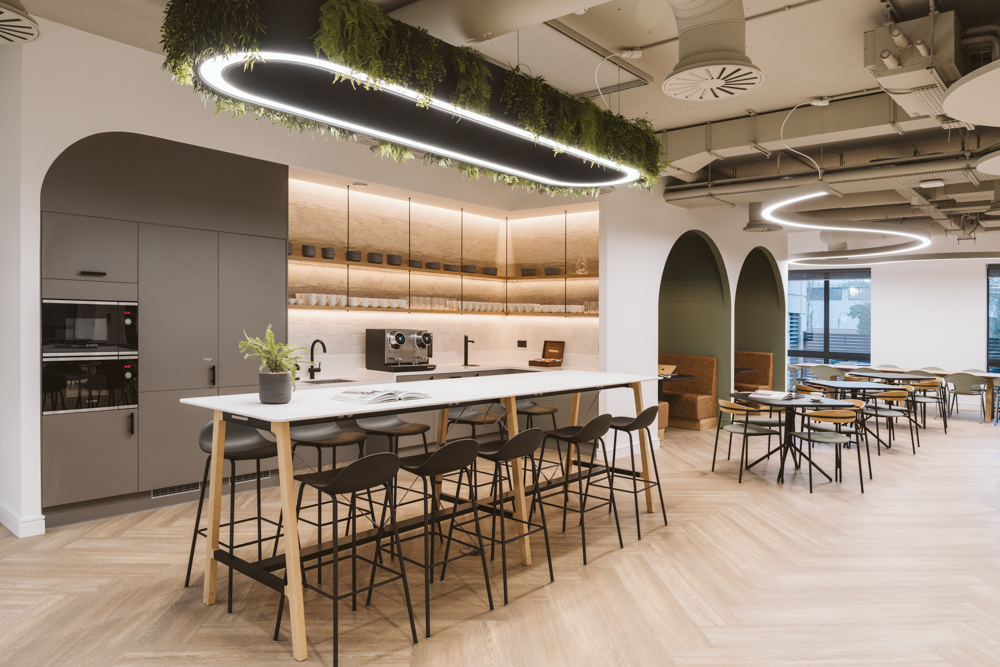 Completed by SPACE, the 50,000 sq ft fit-out in Guildford delivers a modern, adaptable workspace for a private client. Standout features include a central atrium with a large AV wall, a collaborative area known as u2018The Attic’, and the innovative u2018Floating Library’. The office is designed to support 250 employees, with directors’ offices, meeting rooms, training spaces, and breakout areas that encourage flexibility and collaboration. Sustainable, durable materials, energy-efficient systems, and inclusive design features ensure the space is both environmentally responsible and accessible, ready to support future business needs.