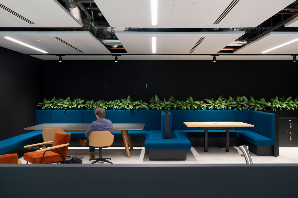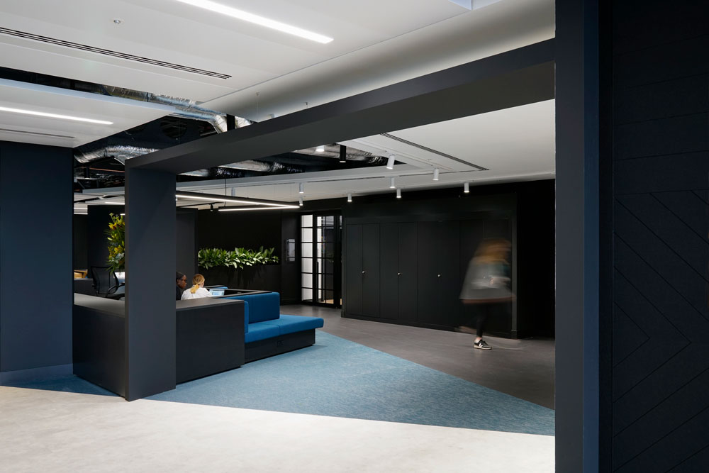 Building upon Moore Kingston Smith’ roots in the City of London and their connection with the trade livery companies, the design is focused around an intervention in the space; referencing the 7 gates of London, an enclosure wraps around the building with seven openings which help with orientation and circulation. The ‘gates’ also create a sense of arrival into key spaces; such as the main meeting suite and flexible social hub. The workspace is divided into three main neighbourhoods – each straddles a shared collaboration space to provide opportunities to bring people together. The space looks like an extension of the Moore Kingston Smith brand and personality.