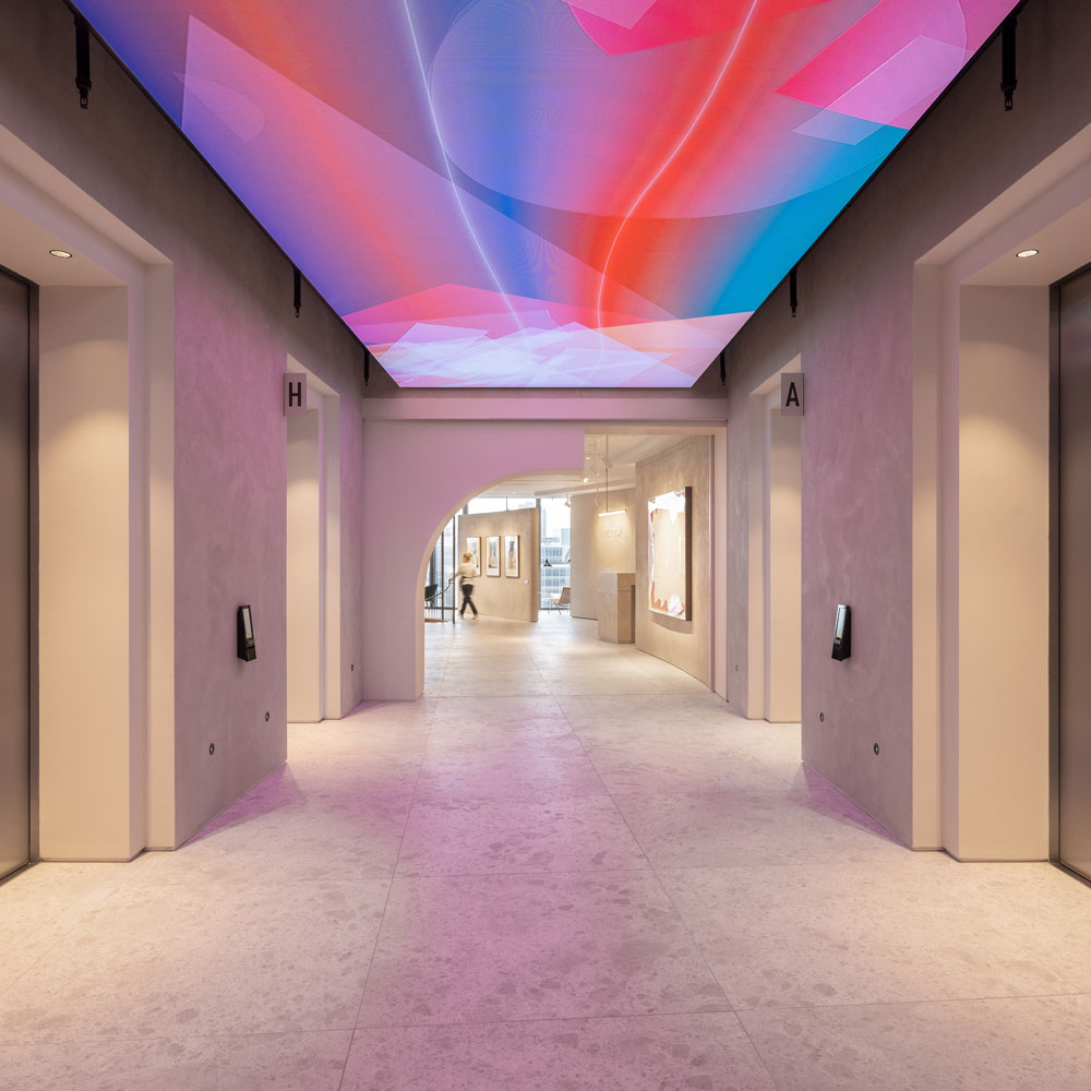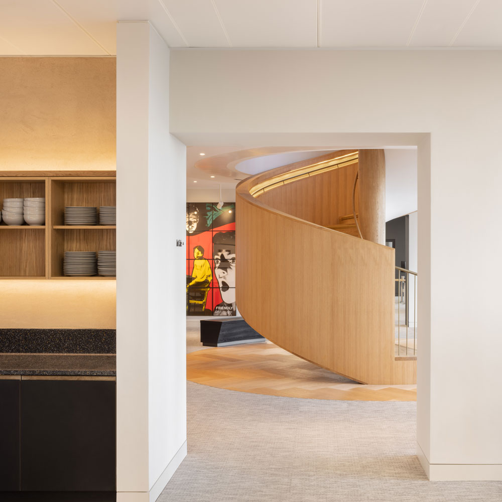 The workplace’s unique sculptural design – the vision of Oliver Marlow who led the Studio TILT team – connects Hiscox’s colleagues and clients in an inclusive way while creating an immersive platform to showcase its extensive art collection.