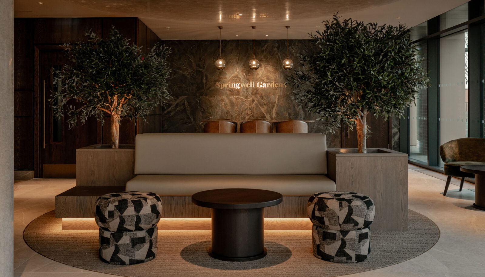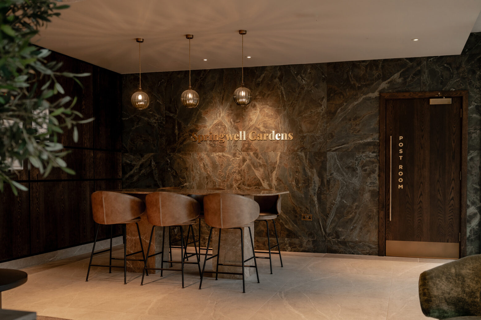 A project comprising of 223 apartments, Studio Two were tasked with creating two communal lobby spaces for facilitate buyer’s to work from home in an environment that felt aspirational whilst homely and inviting.