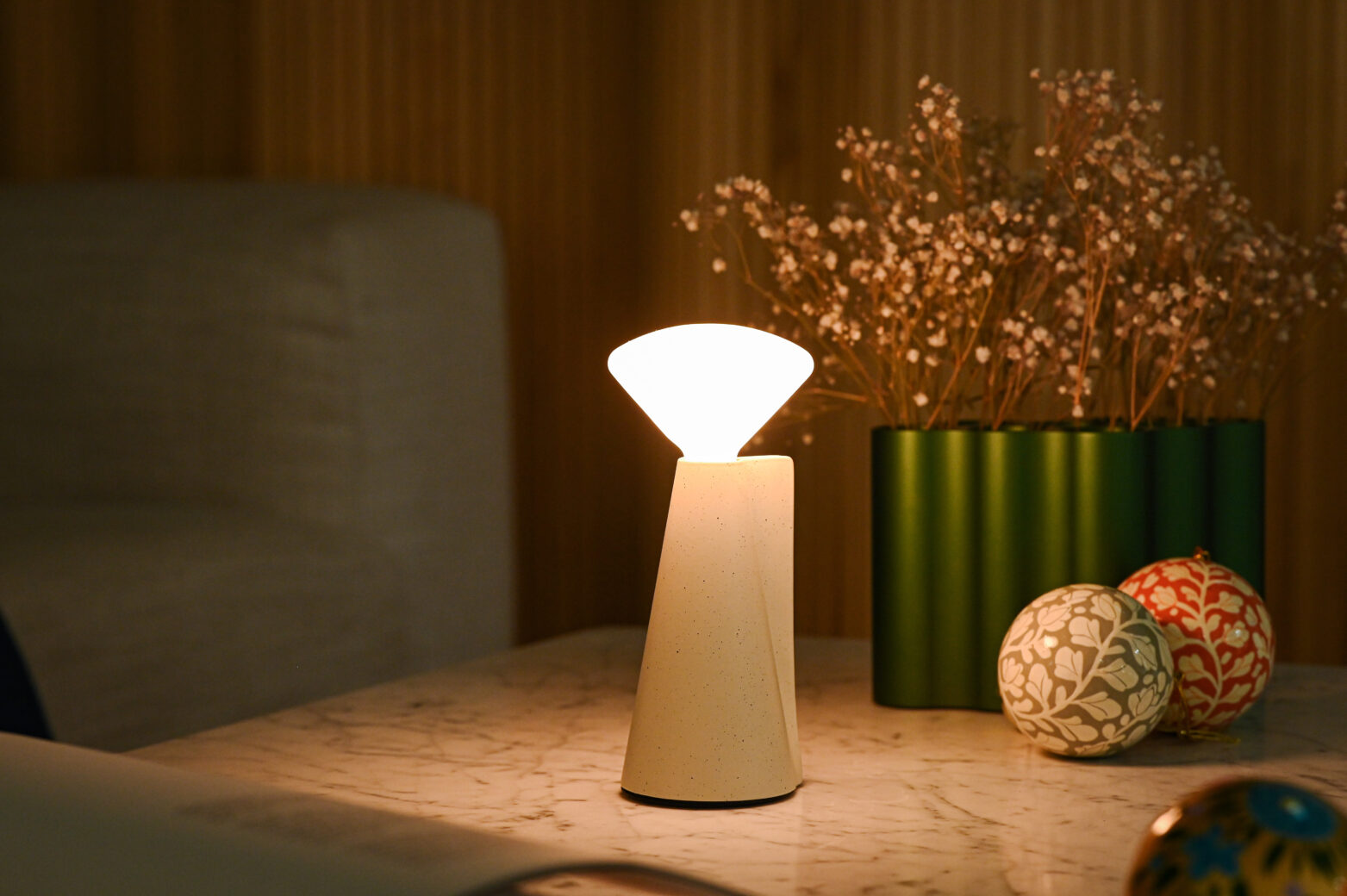 Mantle Portable Lamp is a modern twist on the timeless allure of candlelight. Thoughtfully designed with a sleek, conical form, this compact lamp provides soft, even illumination wherever you need it. Whether enhancing your dining experience or setting the mood outdoors, the Mantle Lamp offers versatile lighting in any environment. Powered by a rechargeable battery, enjoy up to 24 hours of glow on a single charge, with adjustable brightness levels to match your atmosphere. Crafted for convenience, it comes with a 1m charging cable and a high-efficiency 3W bulb, emitting a warm, inviting 2200K glow.