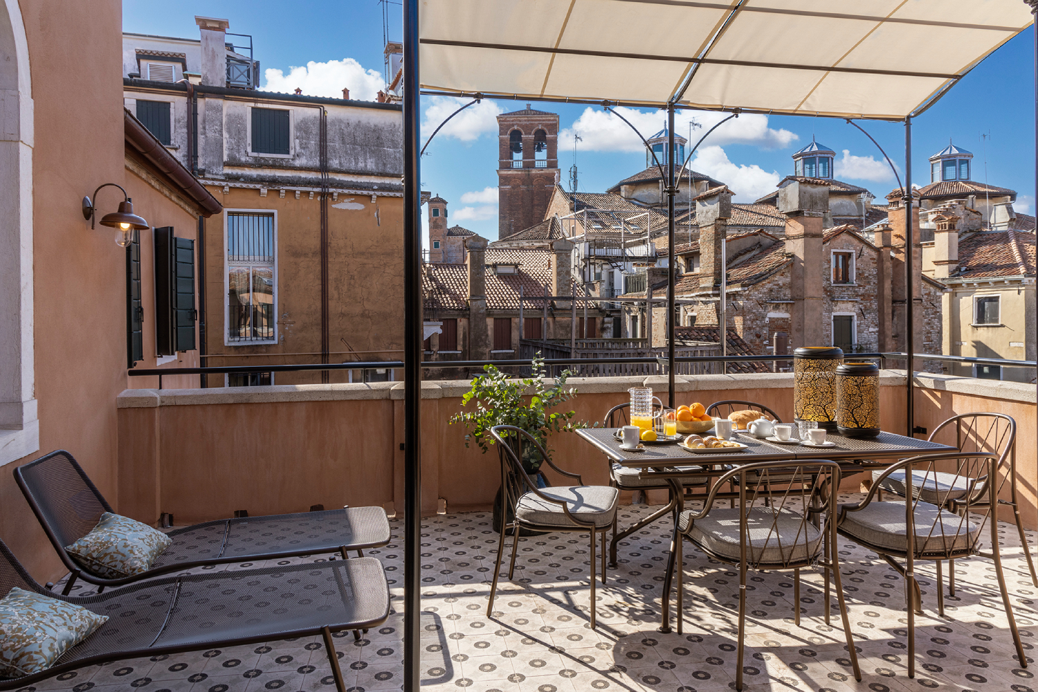 The apartments consist of a hallway at the entrance, a living room/kitchen area consisting of a single room, an internal distribution hallway, two double bedrooms and two bathrooms. Most of them enjoy a breath-taking view of one of the most majestic canals in Venice, the Canale De La Fava, onto which all the main rooms overlook.