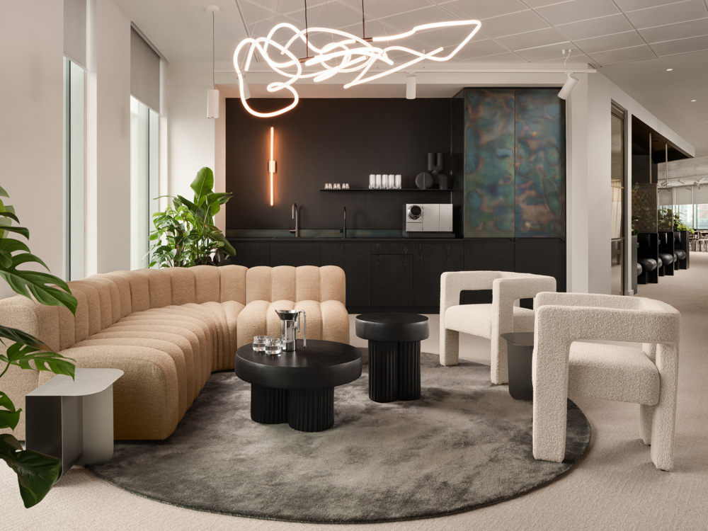 Tasked with creating a lively Tech Hub for Liberty Blume, The Bon Collective designed a space that blends technology, functionality and aesthetic impact, with panoramic views of Leeds. Serving as a dynamic workspace for both local and traveling employees, as well as an impressive venue for clients and vendors, the design focuses on evolution, energy and talent attraction. Sleek stainless-steel surfaces symbolise innovation, while bold blue accents inject energy and confidence, defining the hub as a place where innovation meets creativity.