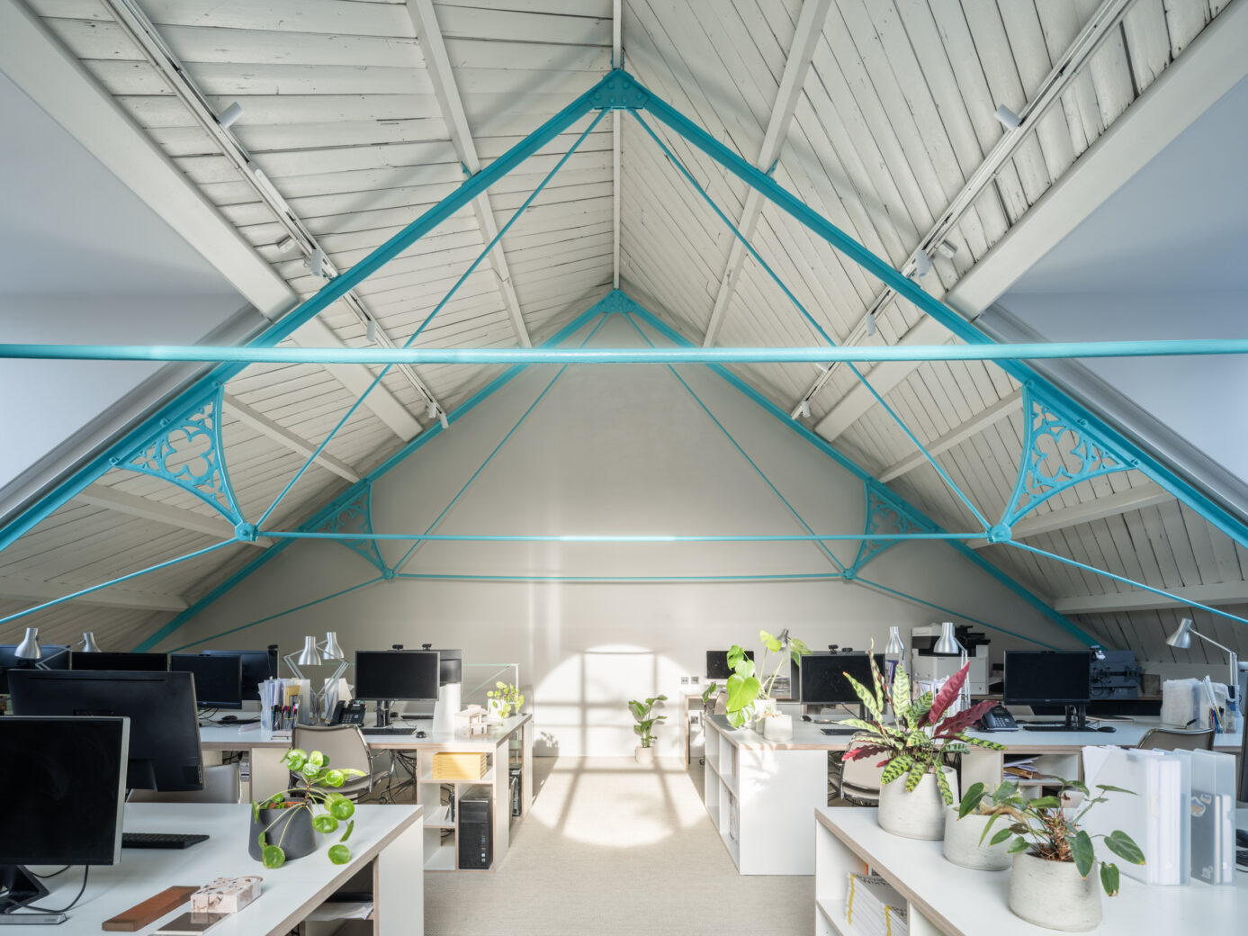 Located in West London, Addison Studios is a vibrant transformation of a converted Victorian mission church into a design studio and workspace. Through considered restoration, the revived original fabric and features emphasise and complement this bright, and creative new workspace with a studio feel. New finishes introduced in select areas complement the exposed existing palette. A glulam structure and bandsawn timber floor bring a contemporary warmth, while cool greens were strategically employed to accentuate the structure. A flexible, lively and expandable studio space was a key requirement of the brief.