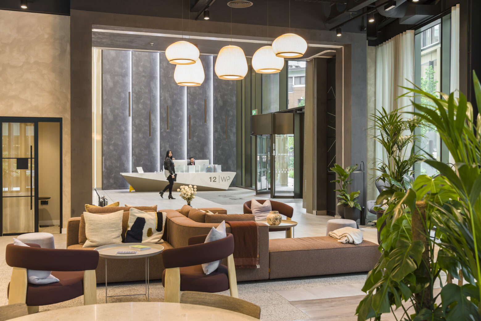 Building on the building’s leading sustainability credentials, recycled and healthy materials have been selected, offering improved occupier wellbeing for tenants and visitors to the lounge. Complementing the space, the lounge carefully integrates chosen scents and music to create a calming and inviting atmosphere. The blend of sandalwood for mental stability, bergamot for relaxation and citrus for mood enhancement contributes to a productive environment. Lo-Fi music that takes inspiration from classical, nature, and ambient sounds form a steady beat offering a cocoon-like background white noise to enhance focus and relaxation.