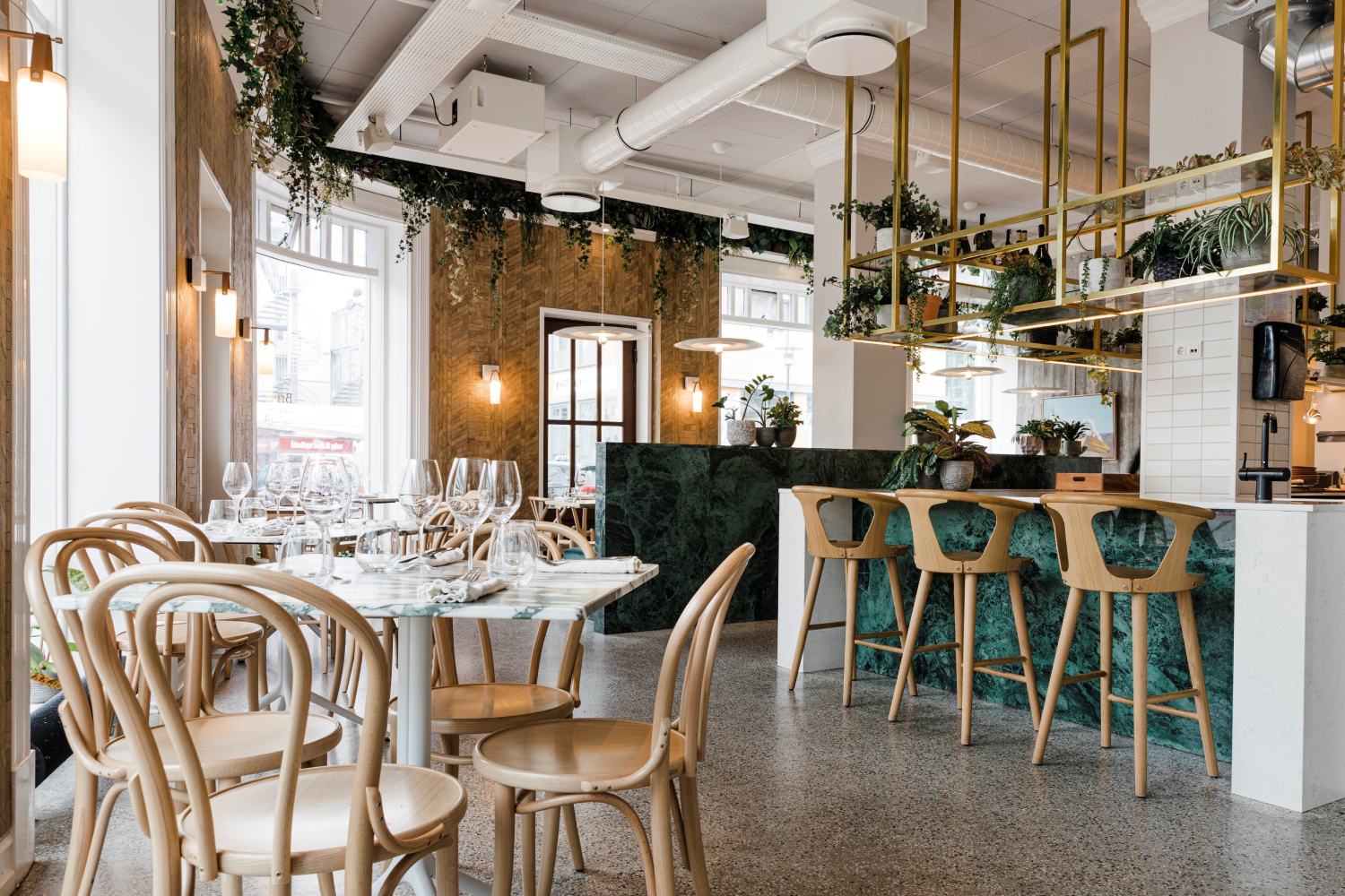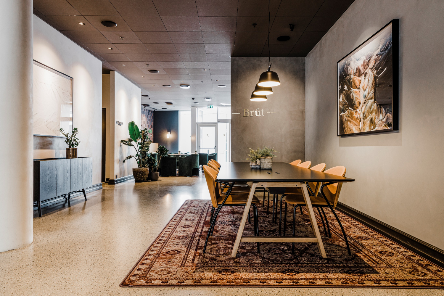 Housed in one of Reykjavik’s oldest and most prestigious buildings, the Radisson Blu strategically repositioned its food and beverage offering by co-launching two new venues, Brút – a high end yet casual seafood restaurant, and Kaffi Ó-le a speciality coffee shop both accessible from the refreshed hotel lobby and street frontage access. The landmark historic building, once home to Iceland’s first steamship company, still retains many original features and details such as its elegant, refined façade and its stunning central green marble staircase complete with art deco ironwork balustrade.