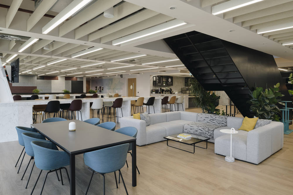 Keen to create a ‘best in class’ regional head office in Circle Square, Manchester, Hilti commissioned No. 1 Circle Square to create a contemporary, considered and efficient head office with sustainability at the forefront of all decision making. The space has been designed to be adaptable, to suit the changing needs of the organisation, and to grow with the Hilti team. A sophisticated, honest and progressive workspace has been delivered enabling Hilti to represent their vision and values to their customers and make their mark in Manchester city centre.