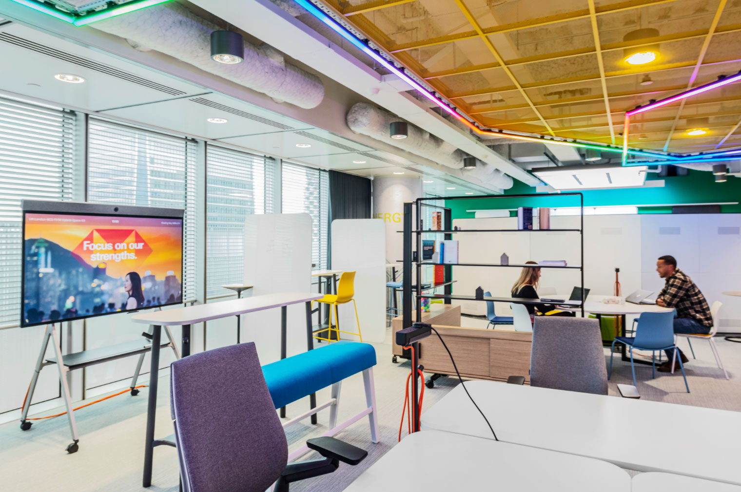 L14 team space is a ‘test and learn’ for HSBC’s Future of Work. A new destination for teams to come together, leveraging the latest tech and furniture to provide a fully flexible and reconfigurable space that bridges the in- person with the remote experience.