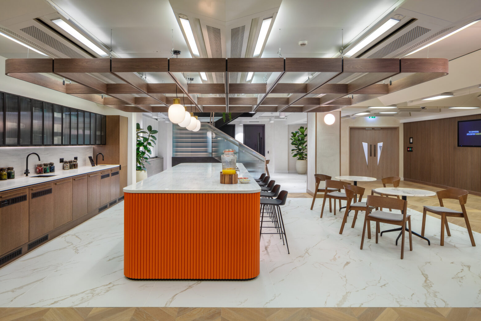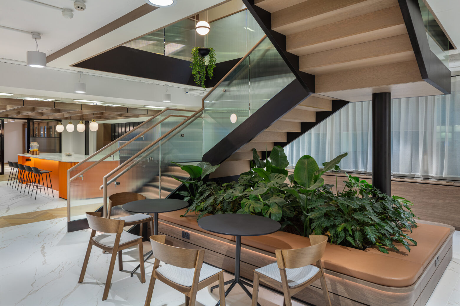 TSK partnered with Oliver Wyman to transform their traditional office set-up into a five-star boutique experience. Marrying mid-century charm with modern functionality, the design harmoniously blends the building’s architectural legacy with contemporary dynamics via a multi-sensory approach. The concept connects two previously separated floors and incorporates zones tailored to work activities, accelerating cross- department connection. State-of-the-art technology in meeting rooms, workstations and phone booths ensures seamless connectivity on local, national and global levels. From social spaces with great coffee to a cosy co-working lounge, this office encourages teams to reunite and thrive both personally and professionally.