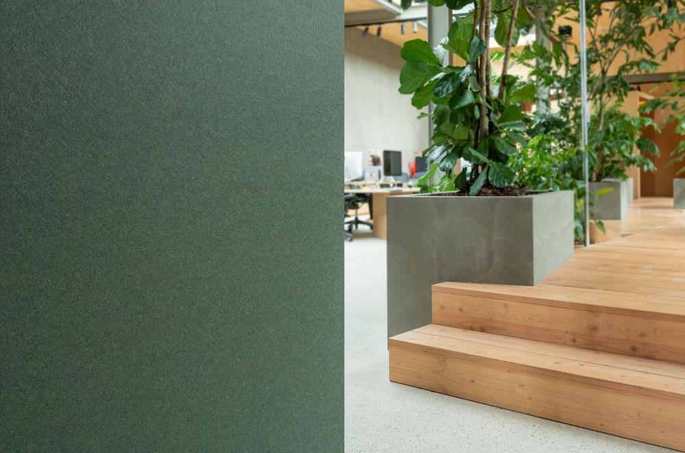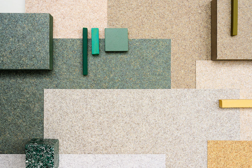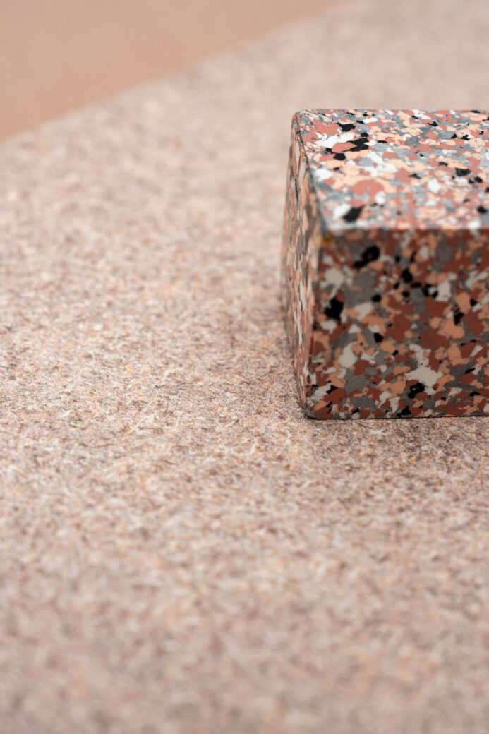Fibras is true to its name, with a speckled fibrous matte surface. Its pressed appearance is a nod to the shredded waste material with which it’s partly made of, revealing the feel of its former life. Including 20% recycled content, Fibras is produced by cleverly utilizing existing Vescom technologies, further contributing to resource reduction. The unique combination of digital printing and embossment with an existing Vescom roller creates a material with its own distinct qualities. Thanks to the use of digital printing, each of the 15 dominant colours u2013 from dusty neutrals to smoky pink, stony blue and mossy green u2013 comprises countless other colours. This multicoloured galaxy gives the fibrous structure even more depth and three-dimensionality while making it easy to combine with different palettes.