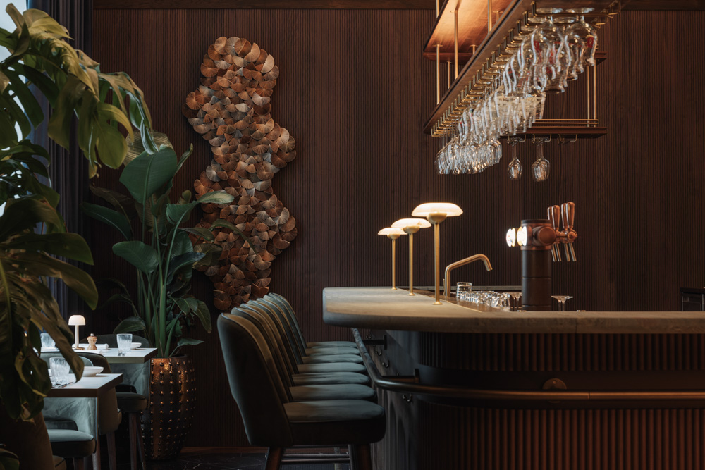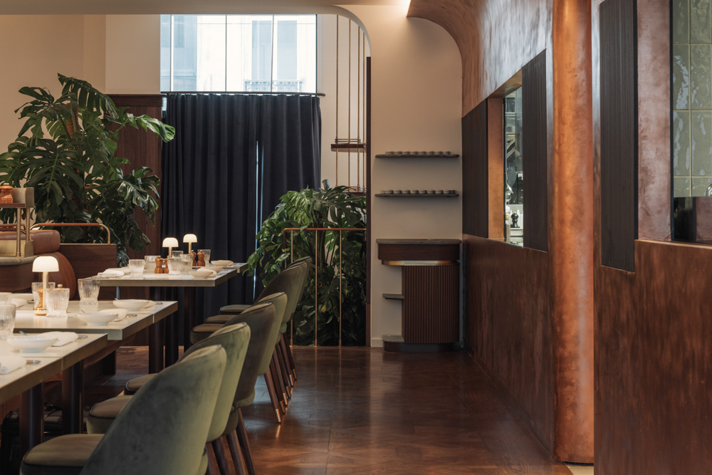 Le Petit Bon Bon, an accessible yet refined bistro by Michelin-starred Chef Christophe Hardiquest, is located within the luxurious Corinthia Brussels. Blending tradition and modernity, the interior reflects the spirit of a classic Belgian brasserie, using natural materials such as copper, marble and wood to create a warm, earthy atmosphere. Guests are greeted by a marble-topped bar and patterned floors, while copper panelling around the finishing kitchen will develop a rich patina. Wall mirrors, leather banquettes, alabaster lamps and brass details complete the setting.