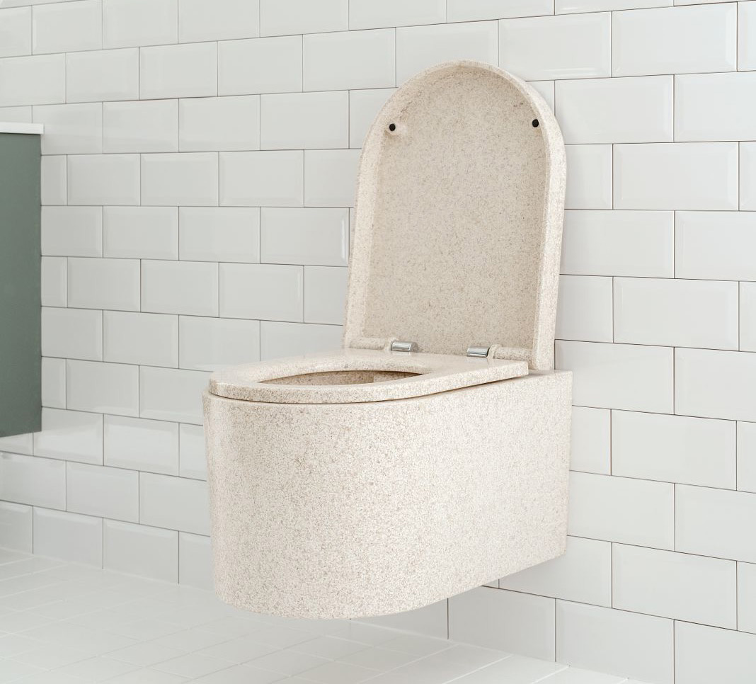 The Block Wall-Hung toilet is a sustainable washroom product that redefines the essence of modern, minimalist design through its timeless form and function. Woodio’s 100% waterproof wood composite material – made from wood chips and resin-based adhesive – is durable and impact resistant, and at the end of its life cycle can be disposed of and used as fuel in the waste-to-energy process. Woodio’s manufacturing process does not require high temperatures and generates minimal material waste, making its carbon footprint 30-50% smaller than that of traditional ceramic or stone-based models.
