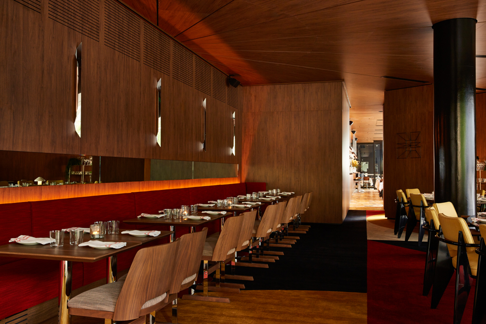 Designed by Woods Bagot, The International is a multi-venue dining destination set within a prominent mid-century modern precinct in Sydney. Positioned between notable architectural landmarks, the project draws inspiration from its surroundings while offering three distinct hospitality spaces under one roof. The design prioritises sustainability, with waste-minimisation strategies such as using standard-sized materials and repurposing broken tiles through u2018crazy paving’ techniques. The upper level incorporates lush landscaping that enhances environmental performance by regulating temperature, improving air quality, and reducing noise. Local artists were commissioned to create bespoke works, reinforcing a sense of place within this globally influenced, culturally embedded venue.