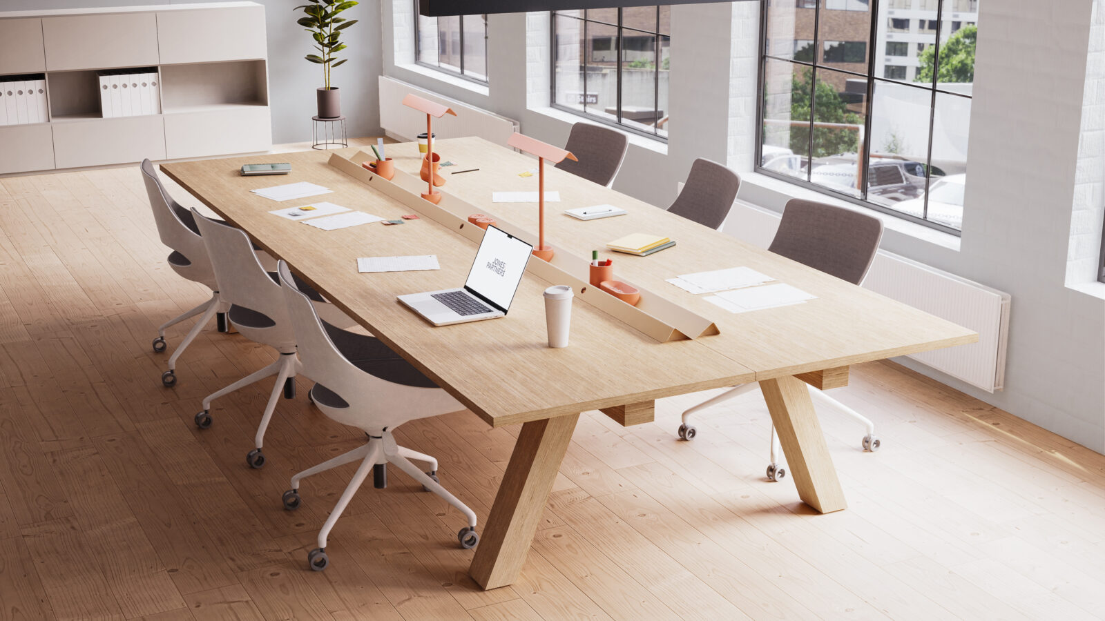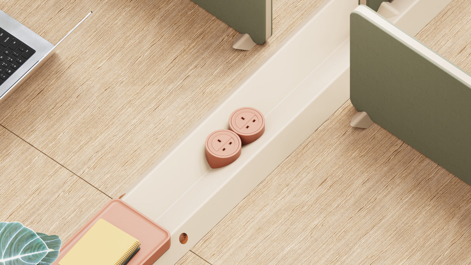 At the heart of the product is a central zig-zag channel, serving as a hub for USB C connectors, providing both power and the ability to share users’ device screens on external presentation monitors. This channel acts as the foundational structure for seamlessly incorporating various accessories. Among these additions are a lamp, stationary storage, extendable mains power, and acoustic screens.
