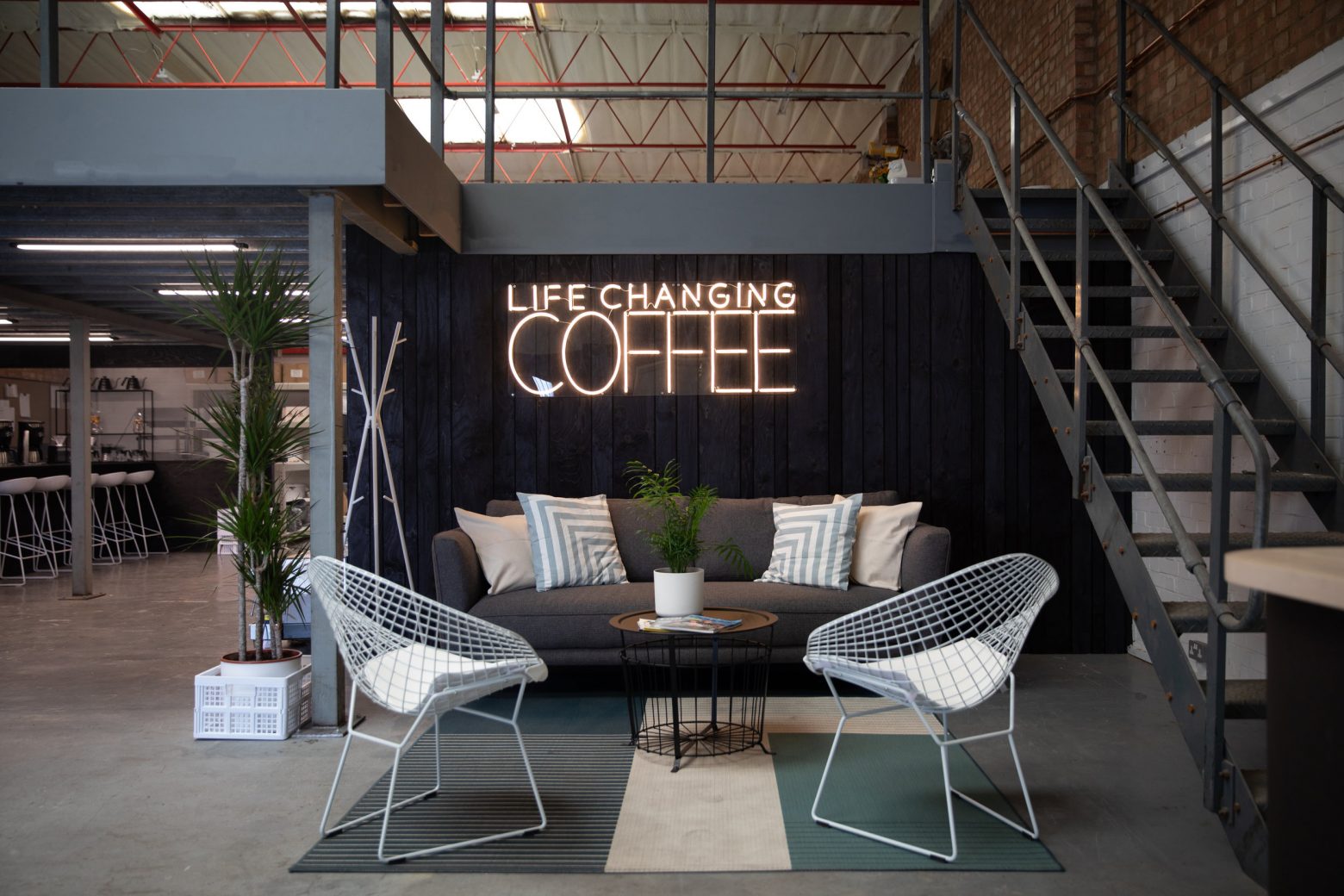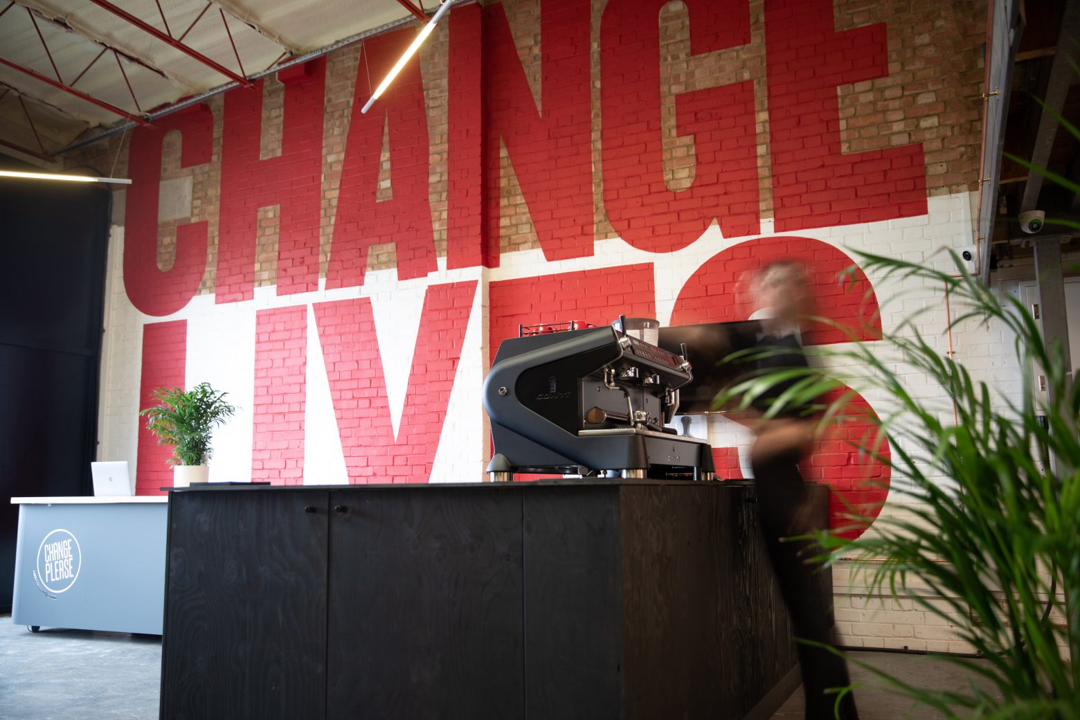 ‘We wanted to create a space that not only delivered on functionality but also created an in-your-face visual representation of the Old Spike Roastery and Change Please brands,’ said Ed Plumb, Design Director of Studio Found. ‘Somewhere dynamic and exciting, where people felt immersed and connected to those brands as well as welcomed. It was also a pleasure to collaborate with ANDTHENSTUDIO on this project’