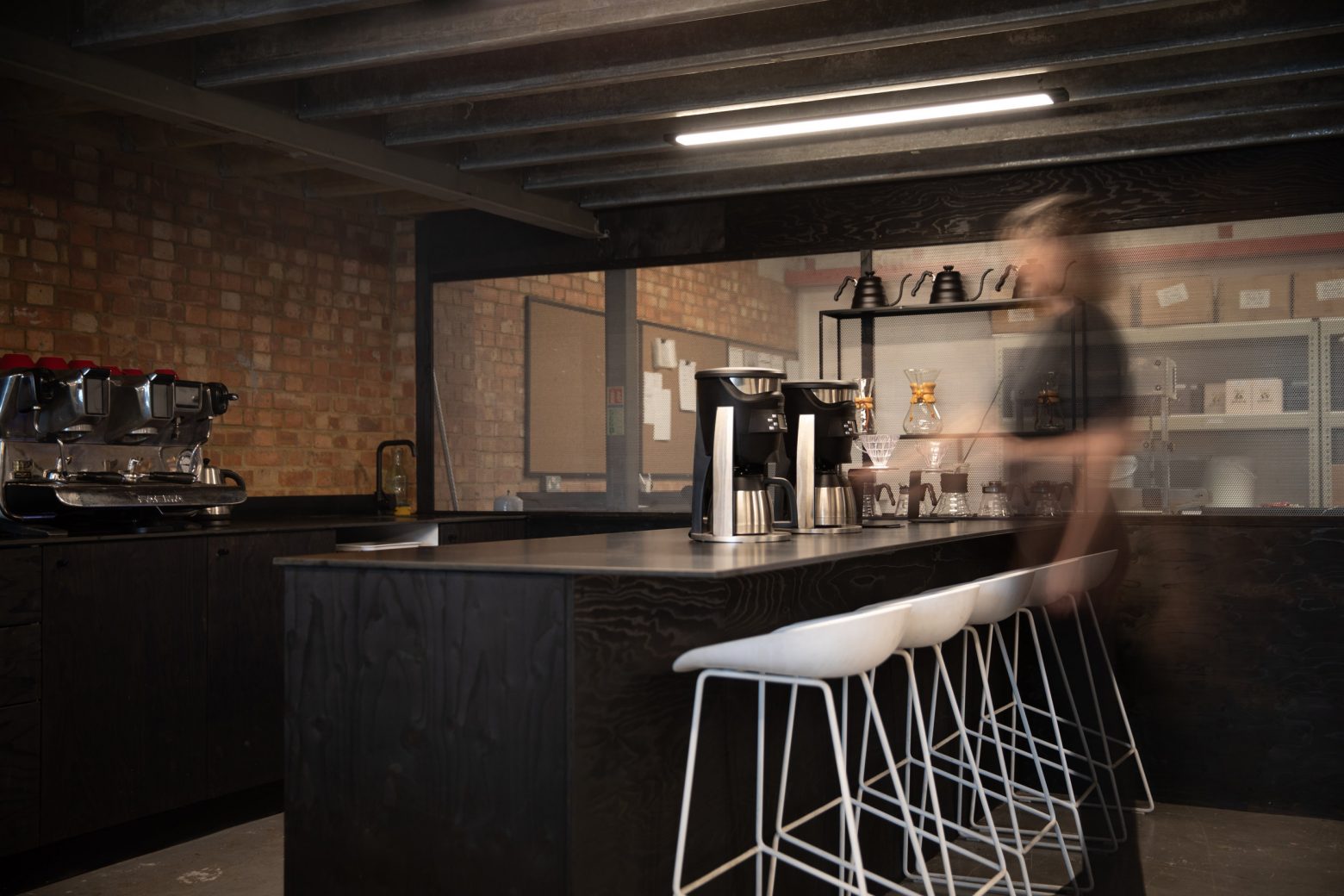 Commissioned by Old Spike Roastery and Change Please – a not-for-profit organisation – the project saw an existing warehouse converted into an airy, high-impact space that functions not only as a roastery and packaging depot for Old Spike Roastery, but also as a barista training school for homeless people. It will also be open to the public at certain times as a coffee and events space.