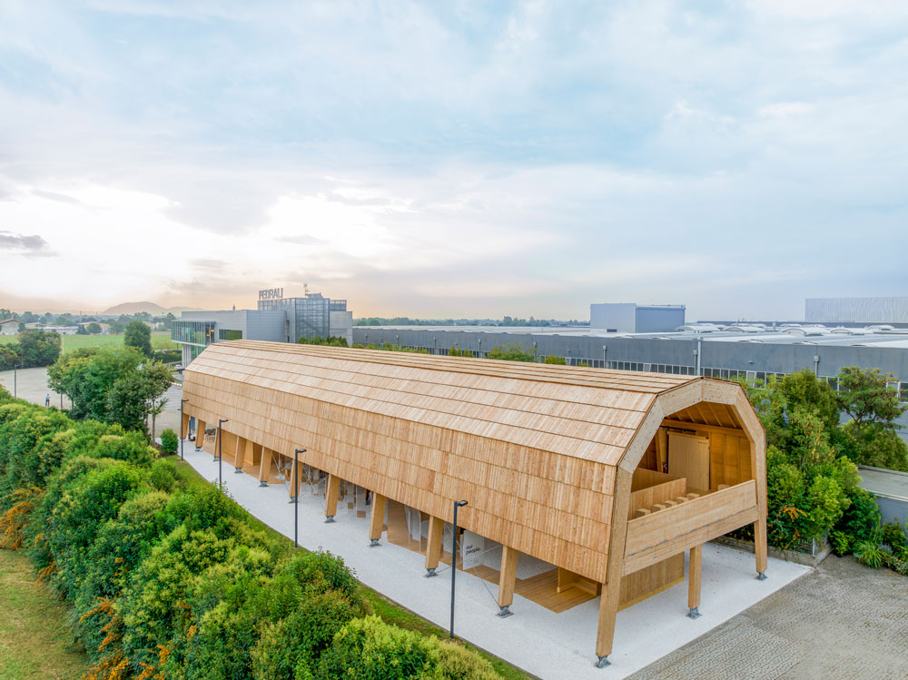 This year Pedrali hits 60, celebrating through the inauguration of the Pedrali Pavilion designed by AMDL CIRCLE and Michele De Lucchi. Taking the form of a large, raised roof resting on solid wooden legs, the Pavilion finds it homes nestled next to the Italian manufacturer’s Headquarters in Bergamo.