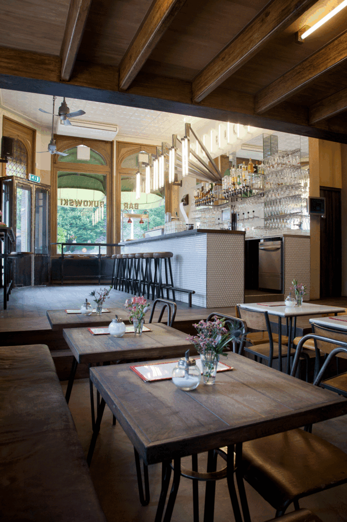 We brainstormed the name, concept, menu and interiors together – lots of messages, reference images, sharing inspiration from venues we had visited and menus we had tried. The name Bukowski came into existence, and from there the concept started to really evolve, using the writer’s literature and life story to form the main ingredients for the design language that was developed for the interior.