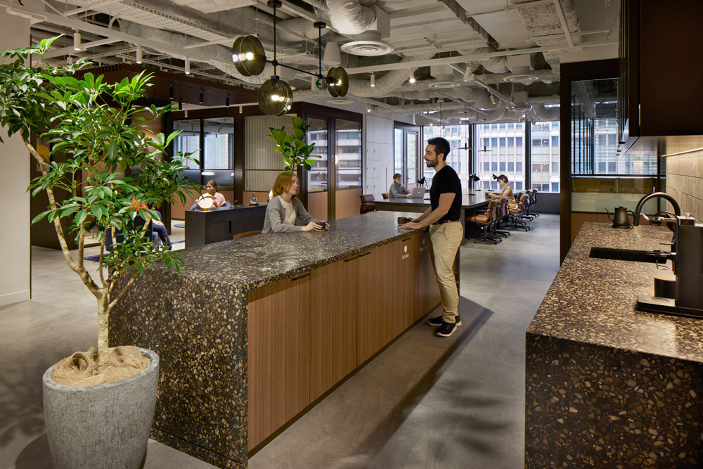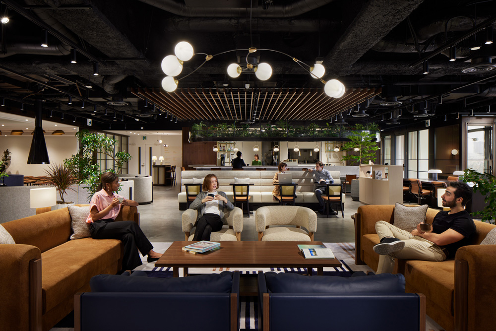 As collaboration was a key design pillar, we created flexible gathering spaces to host a vibrant program of curated events to foster a sense of community throughout the space. Differing seating groups are designed to promote social interaction, with furniture in a range of styles that encourages formal and informal social setups. State-of-the-art technology is embedded at every level, allowing tenants to connect with colleagues and clients globally. Tech enabled focus booths, meeting booths and rooms in a number of different sizes and configurations provide the flexibility to suit the needs of the modern-day tenant.