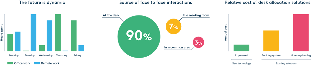 GoSpace AI is a dynamic workspace allocation system. It ensures the right people are always working together in the right amount of space. That is, how workspace is used for the greatest benefit of both the organisation and its people, rather than what it looks like.