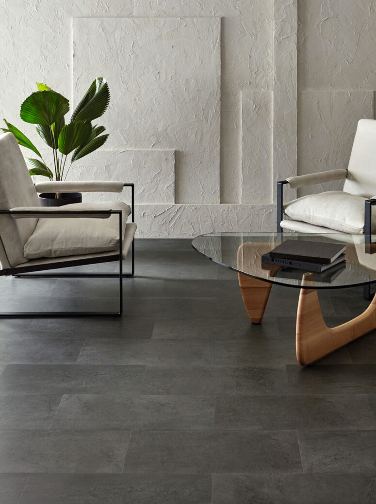 Also joining Form are two contemporary stone designs. Ammonite offers fresh cream tones and a subtle warmth without a yellow feel, while Char provides an edgy contrast with intricacies and details found in slate. Form’s stone designs have a smooth surface texture, close to fine ceramic, which creates a clean, authentic appearance for a natural-looking finish. Unlike natural stones that can be difficult to work with, all six natural-looking Form Stones shades can be specified in Small or Large Parquet and the new Pavestone laying pattern to create impact.