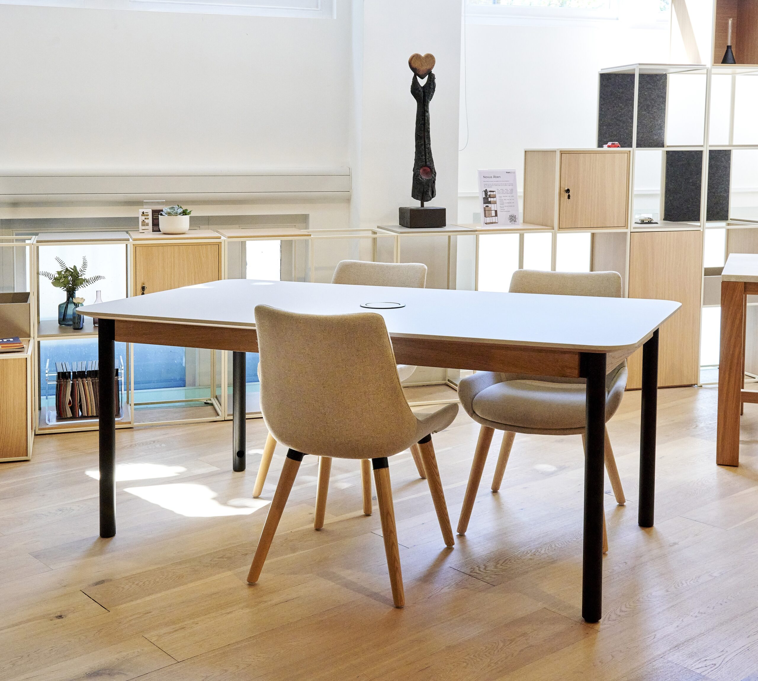 From table tops in Cashmere Grey to Fjord Green and legs in black-textured powder coat to light oak, designers can build a table that complements their desired look. The collection’s Farmhouse table is a sleek modern design which gives up to six people a comfortable workspace and can be further personalised.