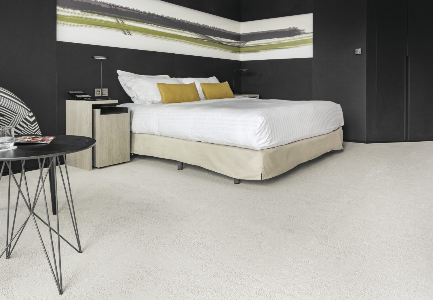 At the heart of the range’s appeal is its sophisticated design: drawing inspiration from the timeless aesthetics of French interiors, each piece features intricate patterns and textures that invite touch. The carpets are available in a selection of refined hues that enhance their surroundings, making every installation a central feature of interior design. Durability is also cornerstone of the collection, as each carpet is constructed using premium materials engineered to withstand the rigors of high-traffic areas. This durability ensures that the collection is not only an aesthetic asset but also a practical choice for environments such as boutique hotels, corporate offices, and luxury retail locations.