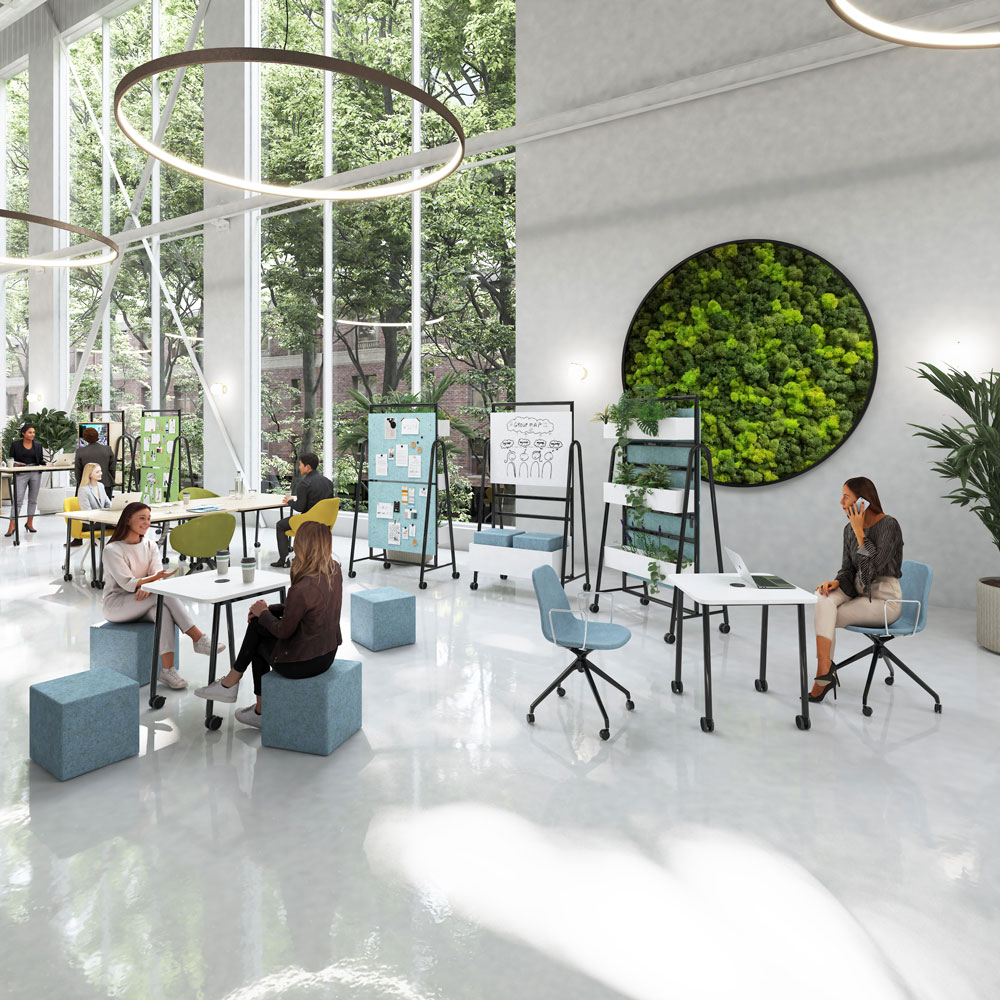 As well as a choice of tables and a mobile caddy, the Show collection boasts a choice of accessories including a planter box, artificial plants, whiteboards, cube storage, upholstered cubes, a TV unit, power bar, acoustic panels and wooden storage. All wooden components are made with FSC-certified wood, come with a five year product guarantee and are available in three wood finishes: White, Onyx Grey and Kendal Oak. Acoustic panels are available in an even broader range of colour finishes, including Dark Green, Dark Grey, Silver Grey, Dark Blue, Orange, Red and Yellow.
