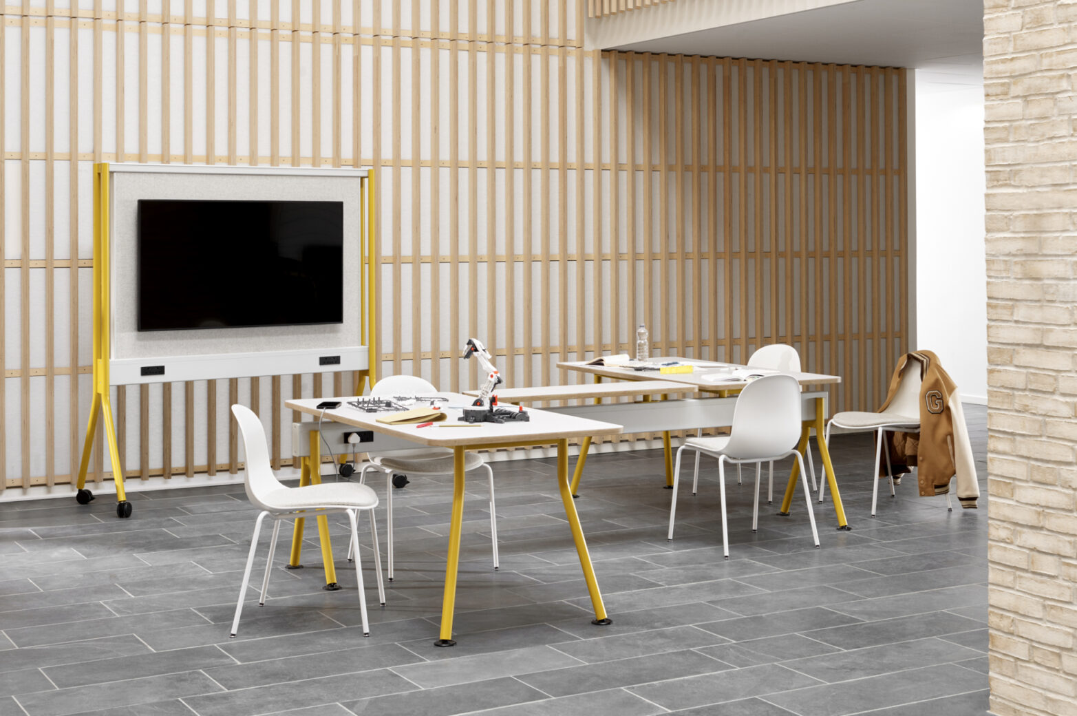 Originally developed by Hürlemann in 2017 when planning the PwC Experience Center in Zürich, the Dancing Office from Vitra consists of mobile partition panels and modular elements (or ‘Dancing Walls’), which embody the principles of agile working into office architecture. Arguably ahead of its time, this system was introduced as businesses were starting to adjust to increasingly unpredictable developments within the workspace.