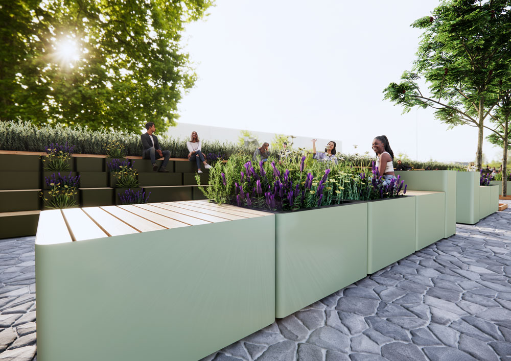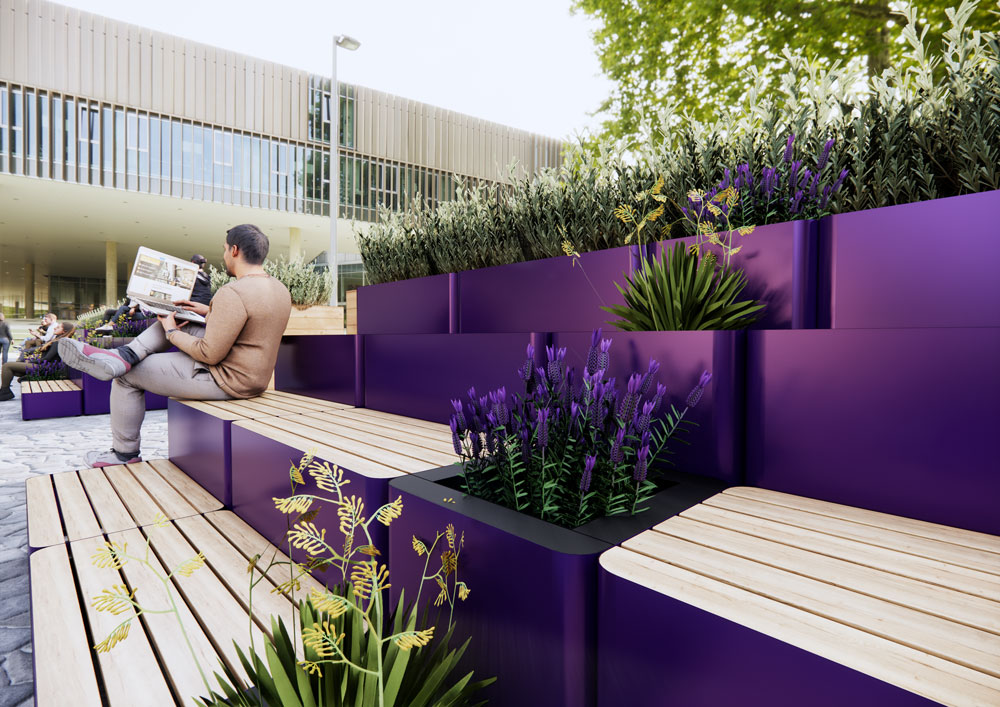 In terms of the Creator Block Outdoors’ sustainability credentials, the composite wood slat tops are not only aesthetically pleasing but are also environmentally friendly. Available in various finishes, the composite wood brings a touch of nature to any outdoor setting without compromising on durability. Frem’s green innovation extends beyond design to construction methods: a forward-thinking distribution approach allows the range’s large units to be efficiently transported in smaller vehicles, reducing carbon emissions during the delivery stage. Flat lock joints also enable quick assembly, while specifiers have a broad choice of different sizes and configurations, allowing them to accommodate both seating and additions like outdoor planters.