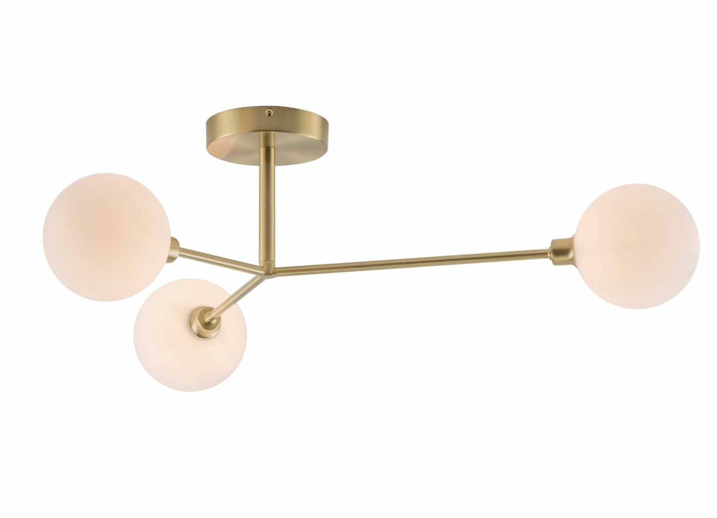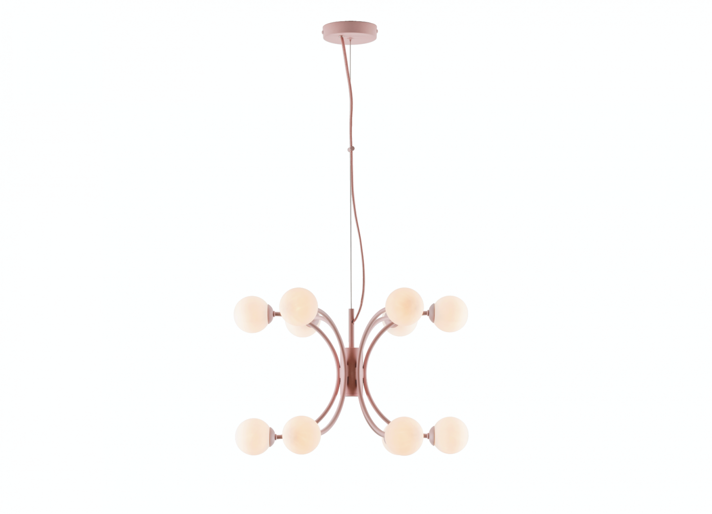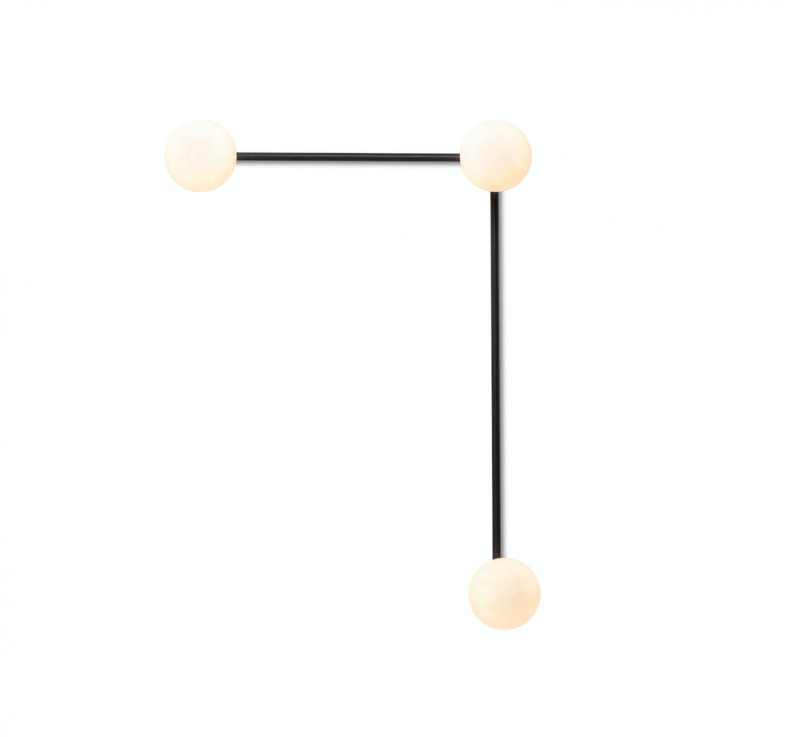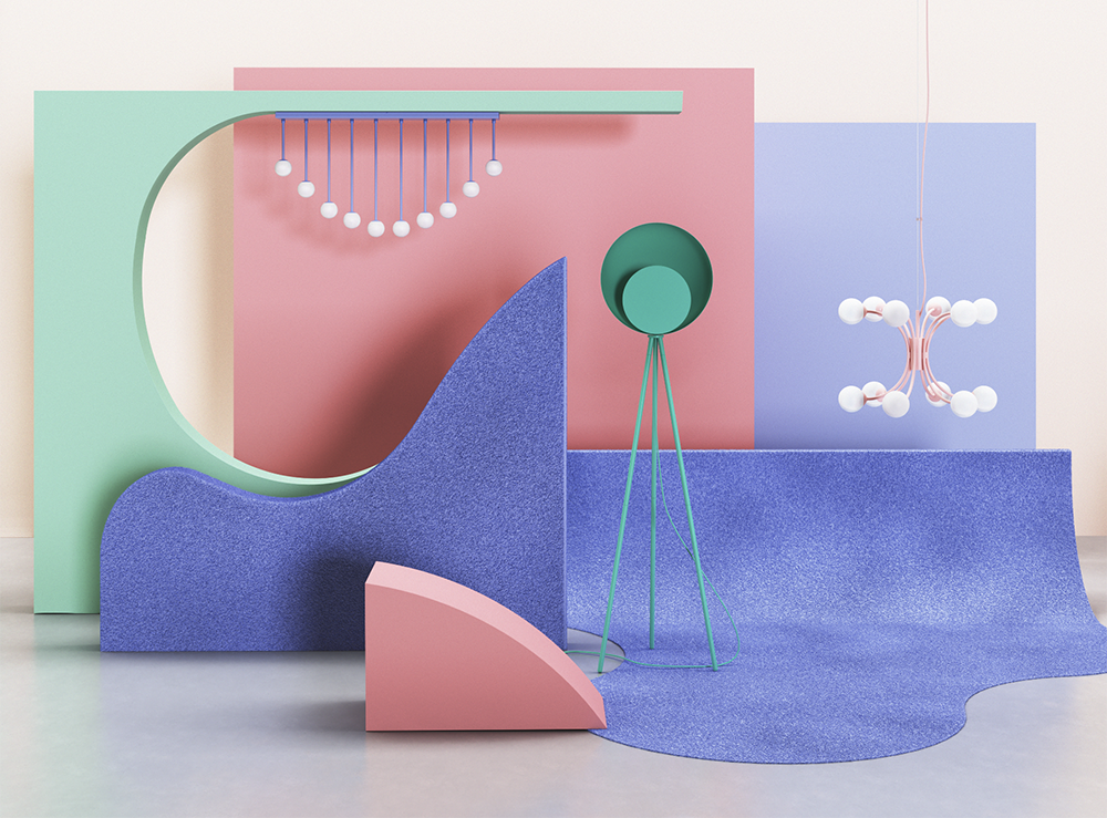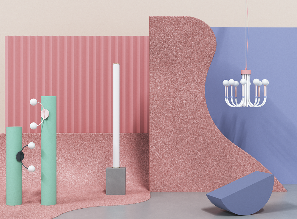 The 2020 designs include a candy coloured chandelier, a standout floor lamp that merges art deco with brutalism, and a flush statement ceiling light that features opal glass shades that form an inverted arch.