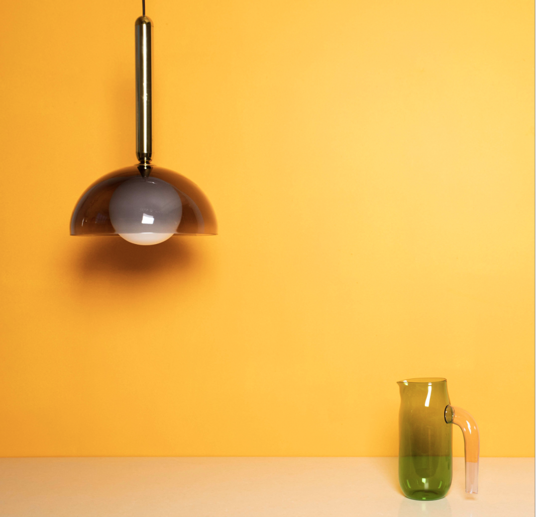 A favourite design, the Sputnik ceiling light, is recoloured to create a centrepiece, and mushroom shapes and thick curves create an eclectic feel. Key colours for this trend include smoked glass and highly polished glass.