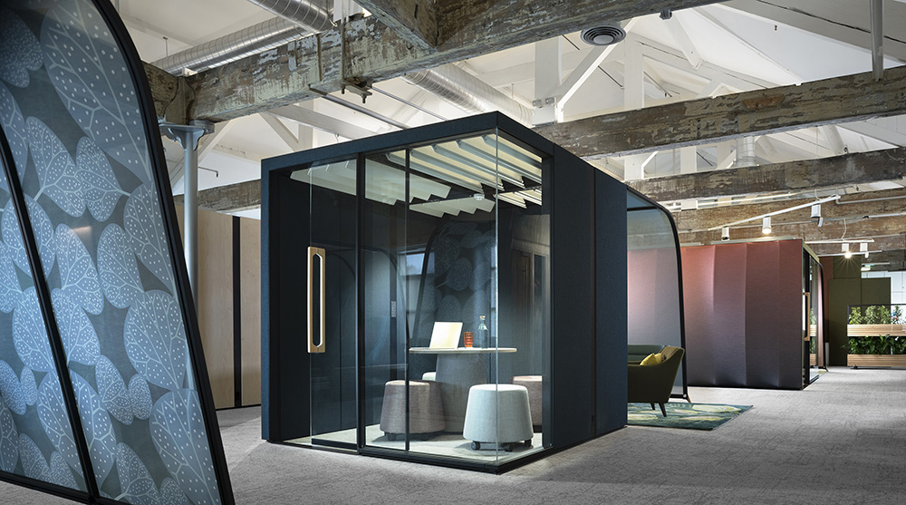 ‘The fact is, it’s arrogant of us to want our pods to look like ours in every client space. We want clients to make them look like theirs,’ says Mark.