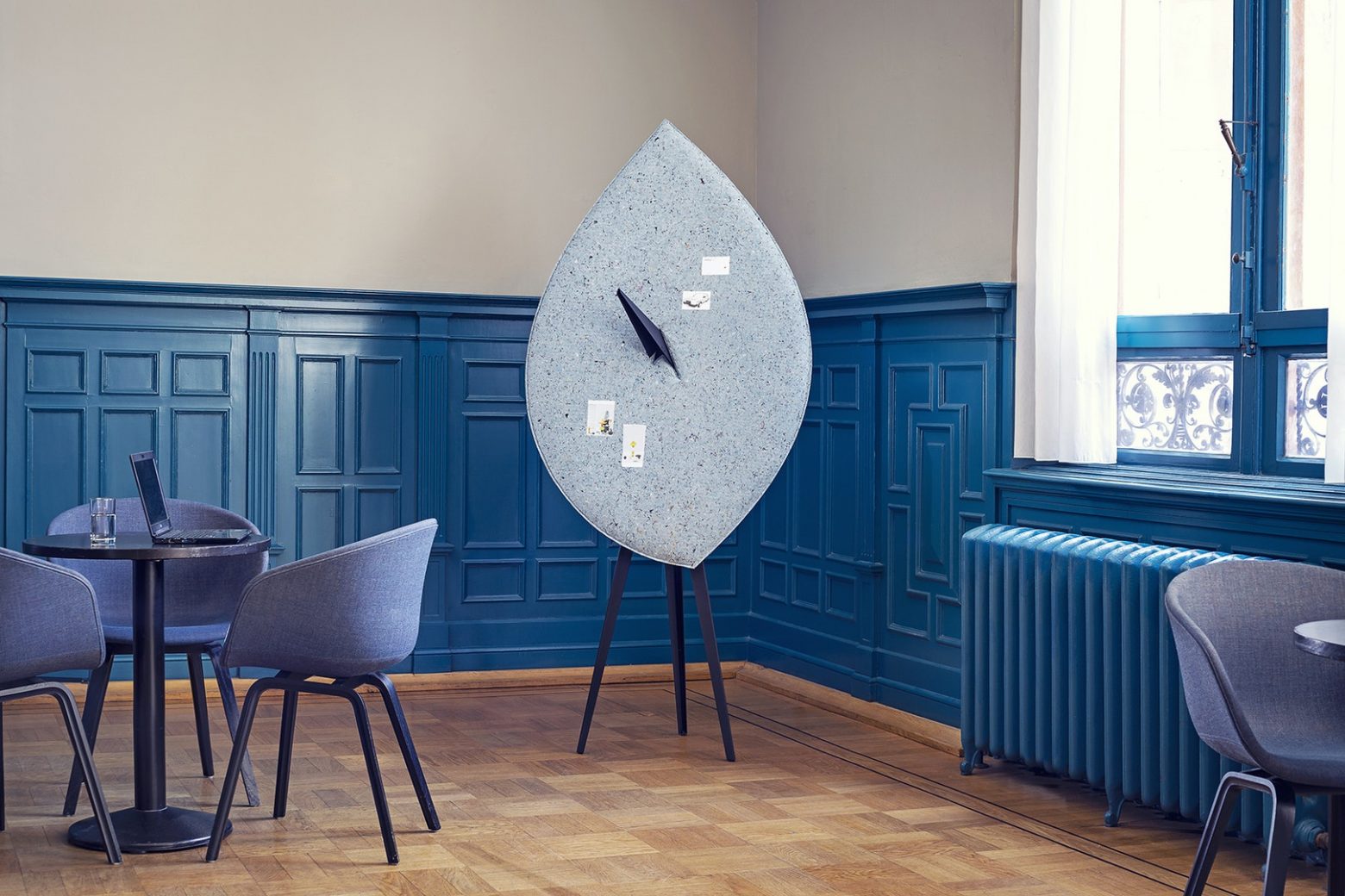 The Leaf is a multifunctional, sustainable and acoustic board that doubles as a coat rack. The acoustic Leaf offers acoustic and visual sheltering, humidity regulation, inspiration and relaxation.