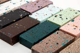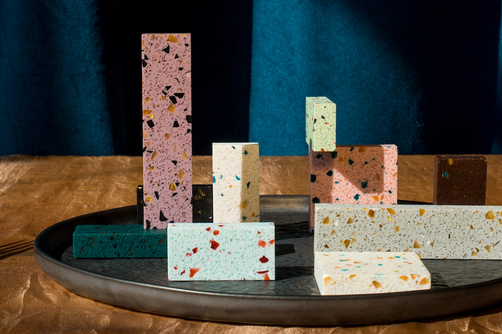 We recently specified Durat for the vanity unit in a new central London hotel. It’s an eco-friendly solid surface material made from recycled plastics, which can be joined together seamlessly to create your design. As well as the application variety it provides, the background, colour and size of the chips can be bespoke, which allows for many different options.