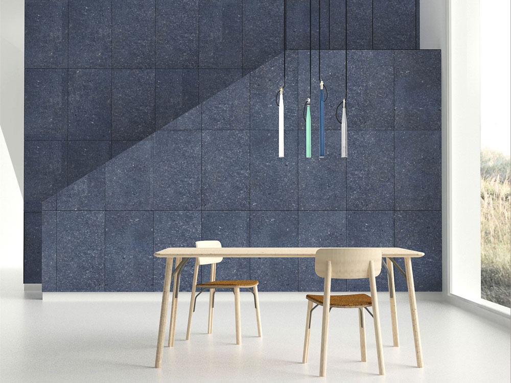 Available in several neutral shades and patterns, Pierreplume panels absorb sound and promote acoustic comfort in open spaces and can be cut and applied wherever sound reduction, texture and circular materiality are desired. When applied to a wall, the material achieves up to a Class D sound absorption, which can be further enhanced with a cavity or double thickness material.