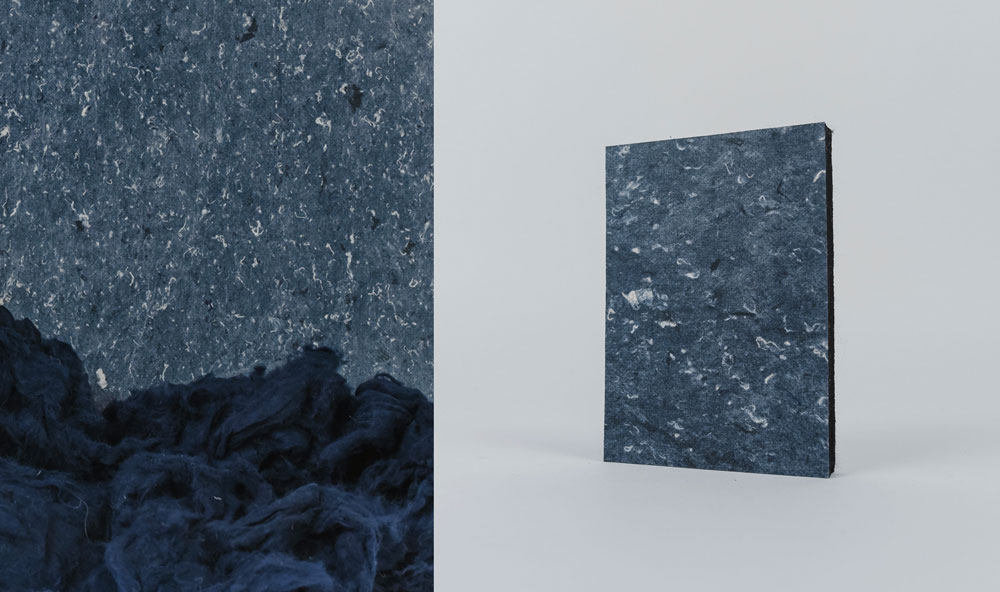 A new alternative for the textile recycling industry, the material is produced in Lille and Angers, France, using textiles from industrial production offcuts, work uniforms and discarded clothing and offering new value to otherwise underused materials – in 2023, Europe textile waste reached a staggering 12.6 million tonnes.