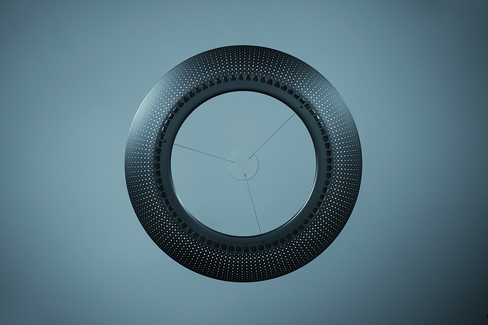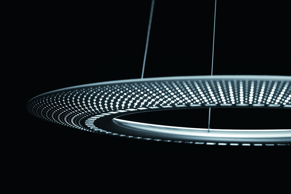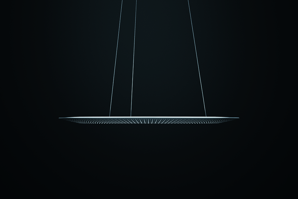 The design development stage involved using pliable LEDs and a highly complex tooling process, while AMBITUS’ perforated pattern is achieved using sophisticated computational formulas, with the resulting abstract design reminiscent of being beneath a starlit sky. It is suspended by distinctive, thin cables that also carry power and data, with the result being a precise, elegant product that fuses design poetry with sharp functionality.