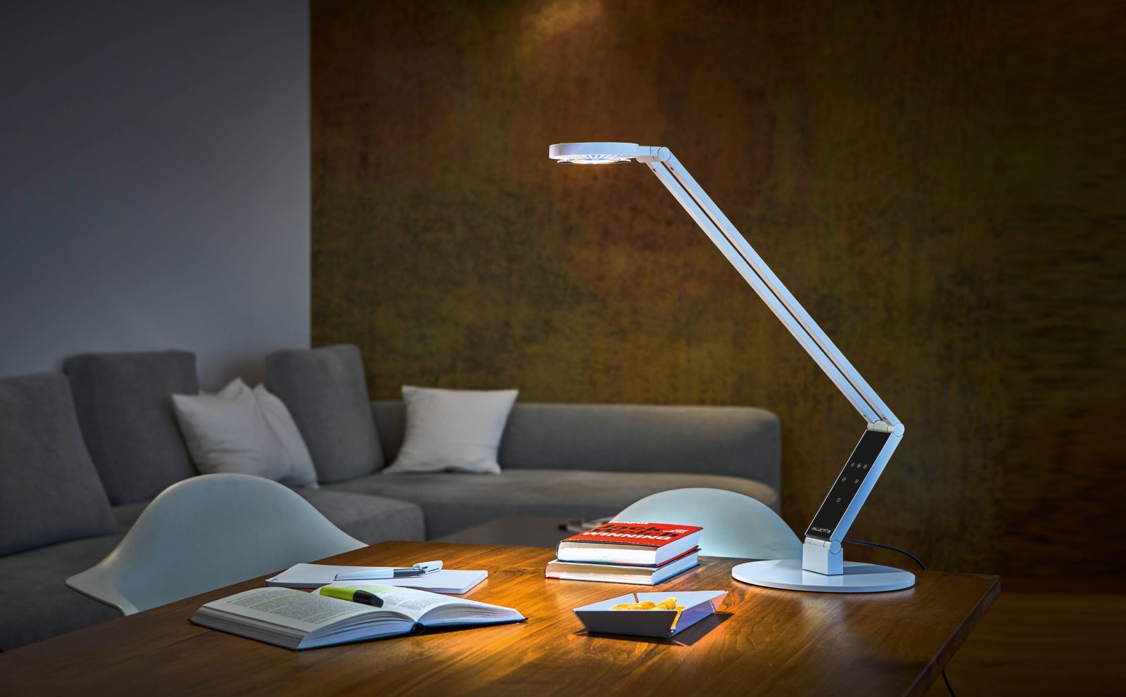 LUCTRA lamps are completely flexible and can be personalised to your daily routine using the sleek touch panel or the app, which means you get exactly the right light for you during the day without having to think about it.