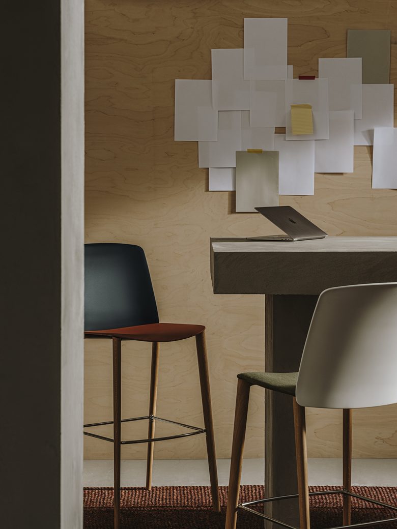 Quiet in form and near endless in possibilities, Mixu is a sustainable and versatile collection of chairs and stools that can be completely customised to suit the needs of any context and environment.