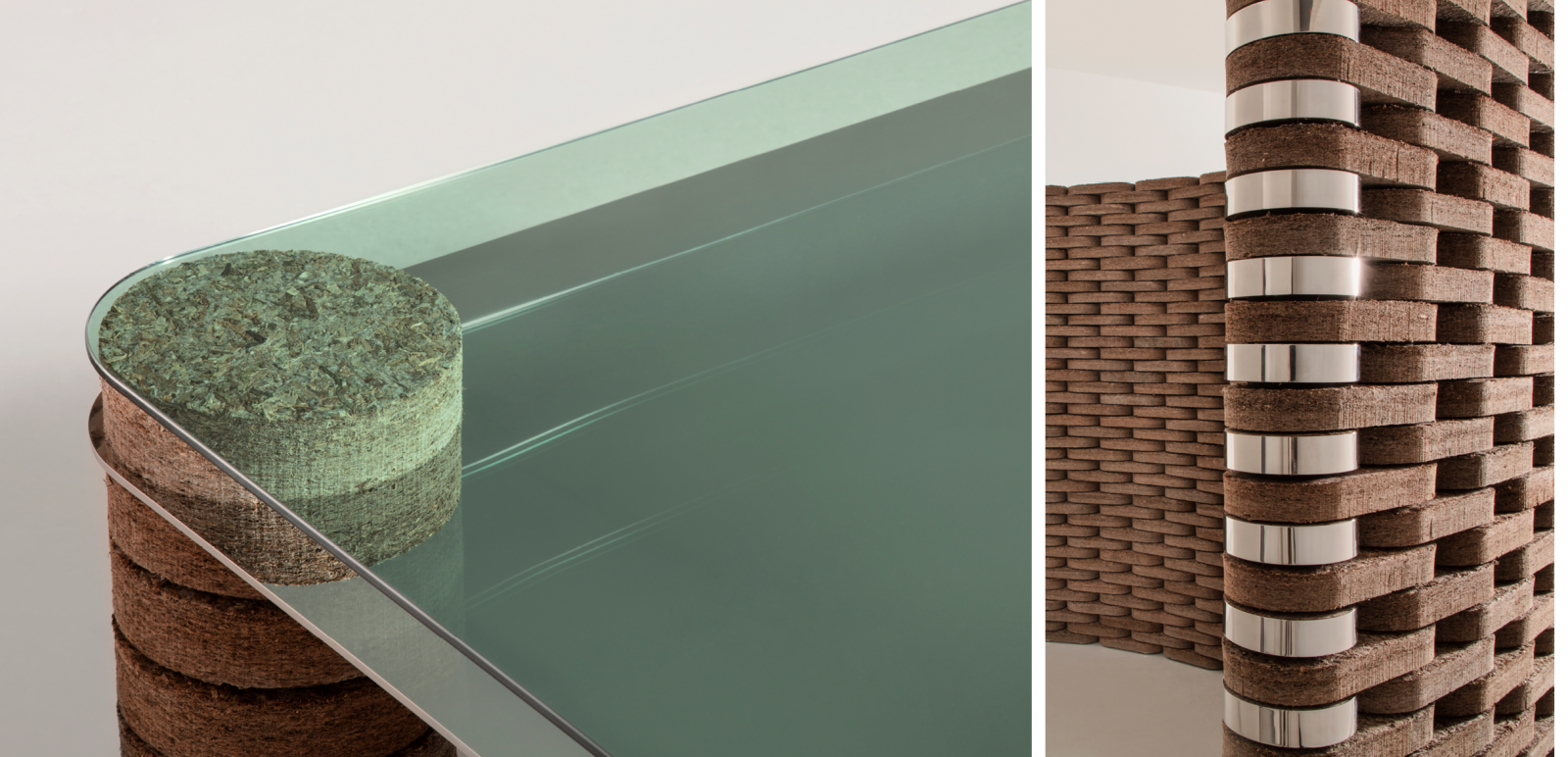 Created with award-winning designer and architect, David Thulstrup, the Momentum Collection explores the tactility of eelgrass through four limited edition designs: a Low Table, High Table, Podium and Screen – marking the first use of Søuld’s eelgrass in furniture design. With a focus on the senses, each piece integrates glass and steel with Søuld’s eelgrass Acoustic Mats.