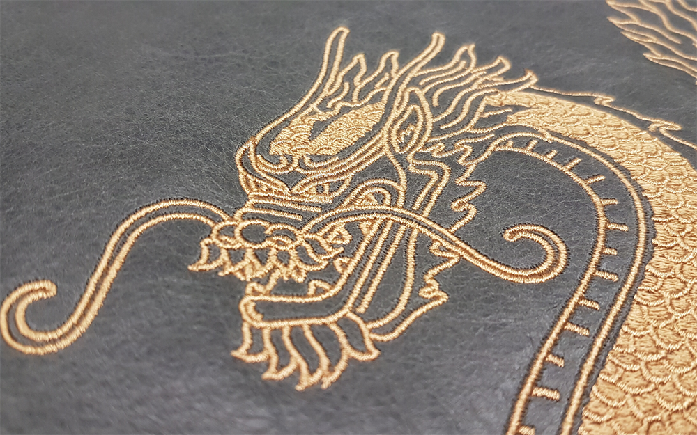 Yarwood Leather create bespoke embroidered leather for Tattu Edinburgh