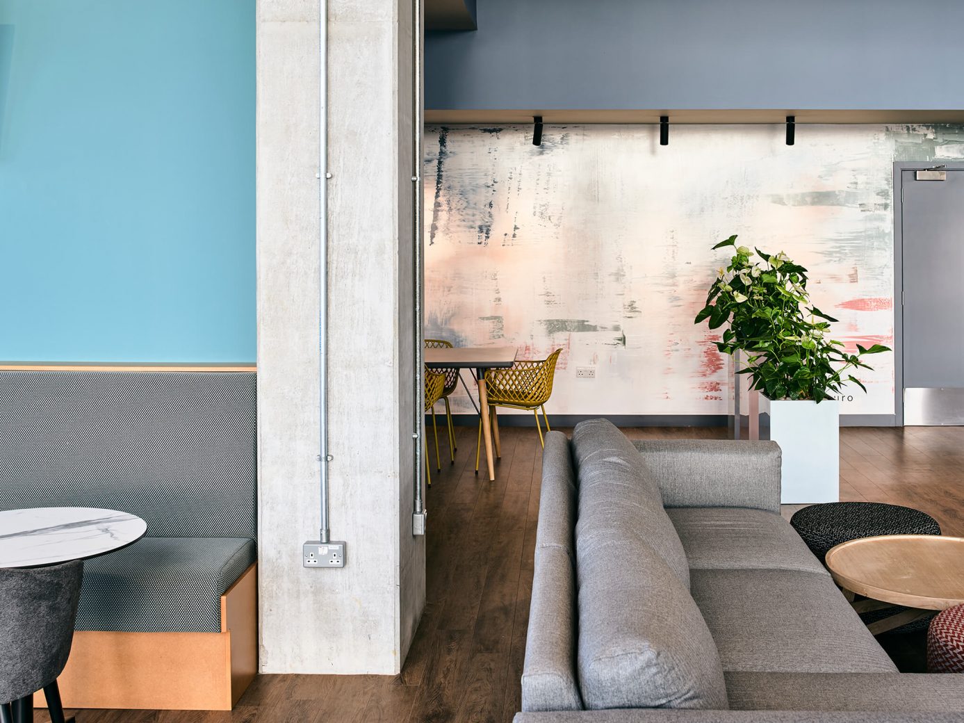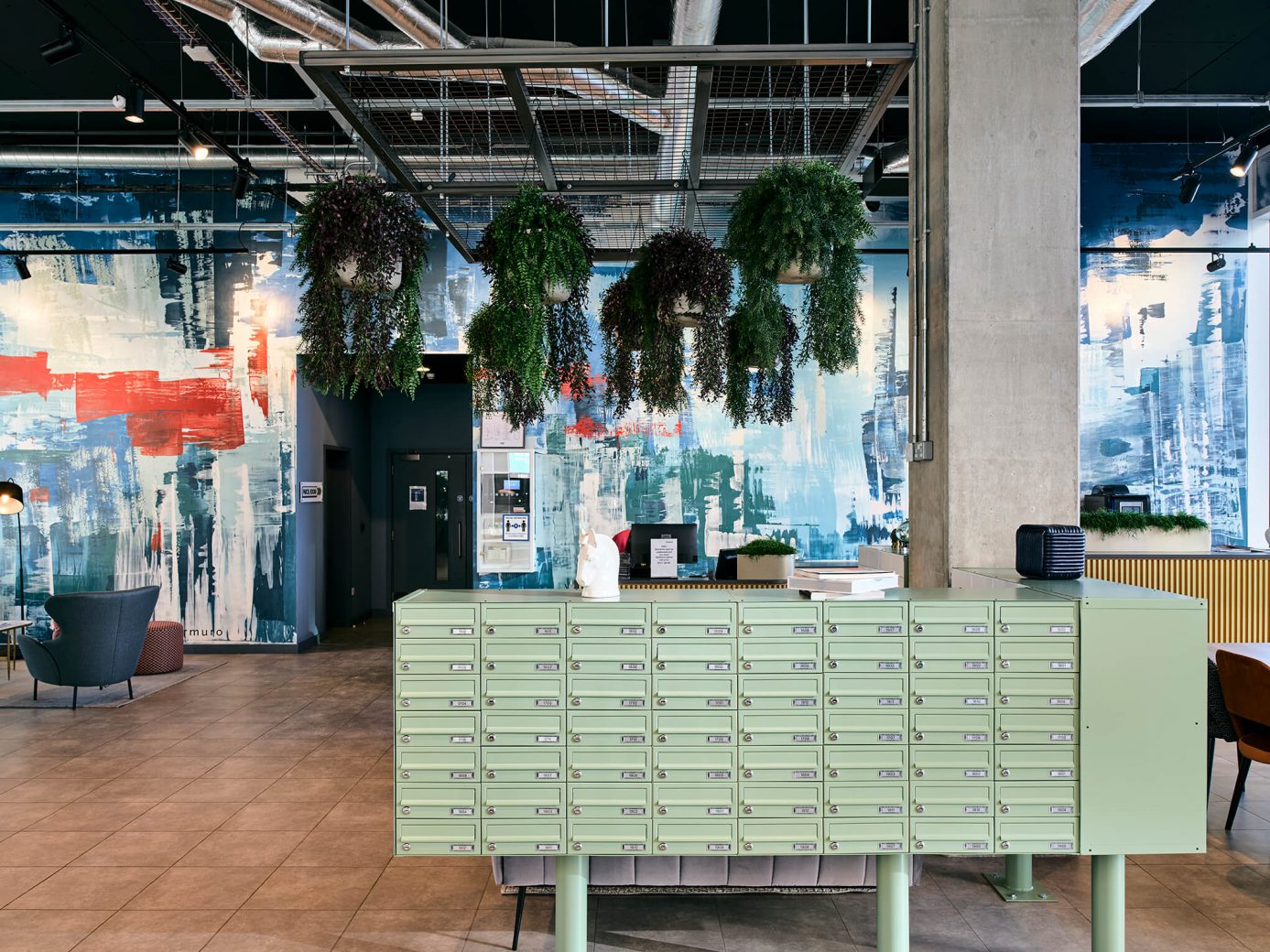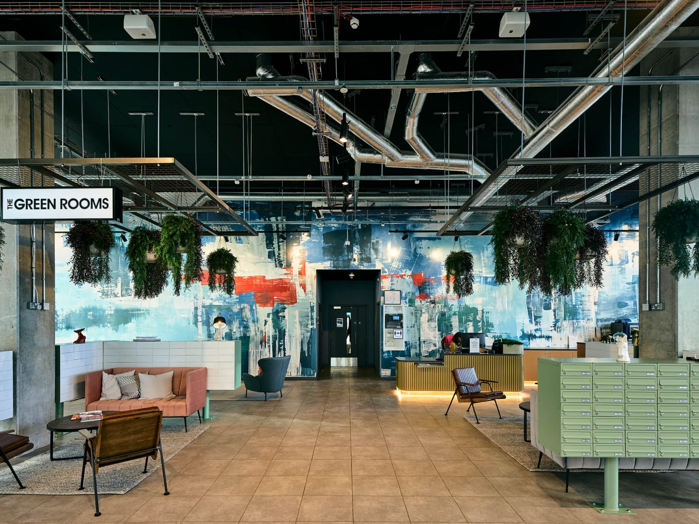 ‘We are delighted with the result of 74’s design concept,’ Cara Gallacher, Regional Property Manager at Amro Property Management, enthuses. ‘The design links all aspects of the local landscape to ensure The Green Rooms is identifiably unique, providing residents with practical yet impressive elements. We are proud to have partnered with 74 on our primary BTR scheme. From conceptualisation to reality, the design is inherently modern and adds character, complementing our large contemporary frescoes.’