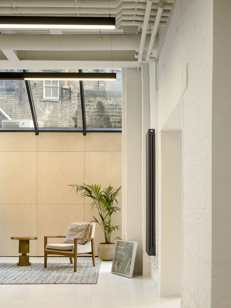 Symes Mews, designed with architect, pH+, sits within a conservation area ‘known for its rich industrial and creative heritage, making it an attractive location for a sustainable and design-led workspace,’ Paul Hicks, Investment Manager at Fabrix, tells us. ‘It has, however, historically lacked a significant portion of high quality office space. We saw the potential for Symes Mews to offer a sustainable and design-led workspace where occupiers could benefit from being within close proximity to the major transport hubs of King’s Cross and Euston, while enjoying the buzz that attracts so many people to Camden on a daily basis.’