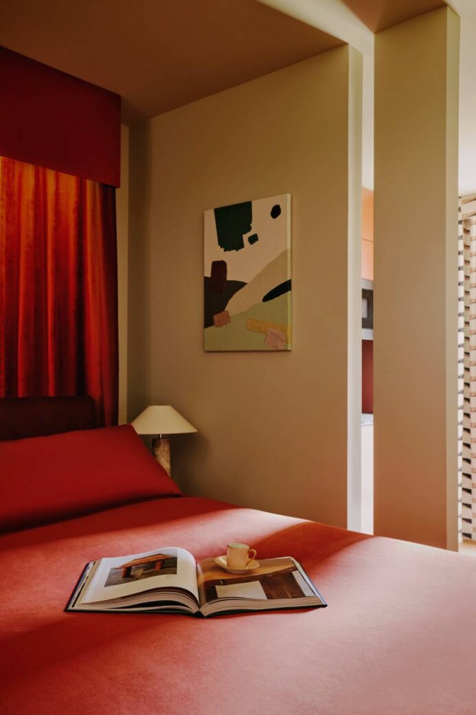 To maintain its locally-focused ethos, Locke worked alongside London-based design studio Sella (led by Tatjana von Stein) to take inspiration from the region. The distinctive, sophisticated design language throughout the rooms and common areas strives to reflect Enge’s lush landscape and cultural identity, with colourful tones, plush materials and vibrant modernist patterns paying homage to riviera aesthetics and the nearby Lake Zurich. Within the studios, bespoke decorative curtains line the walls and frame the bed in a grandiose style, creating a warm and sumptuous feel.