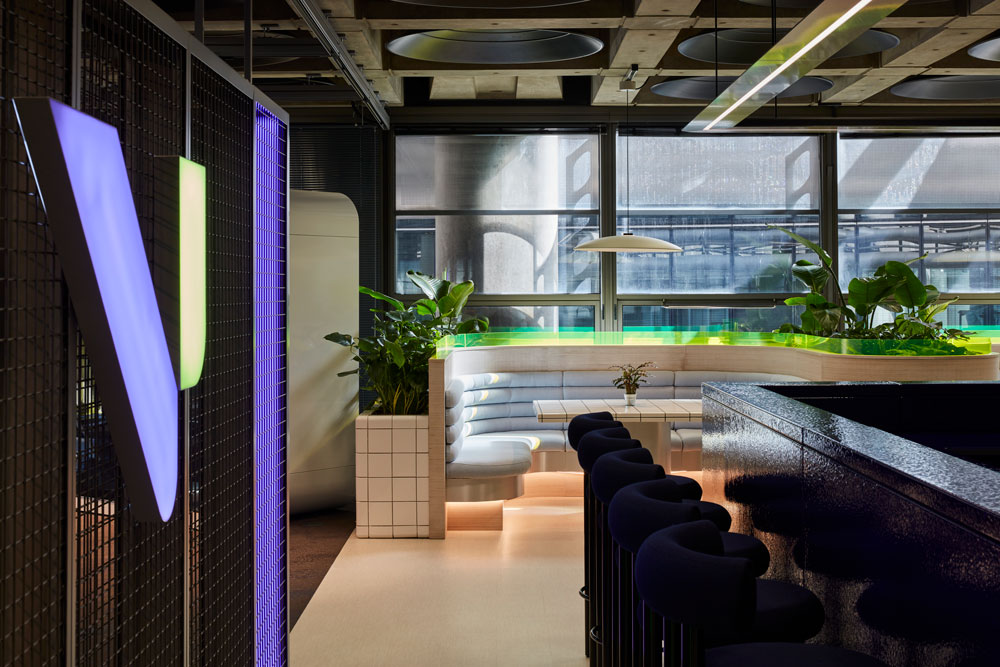 Representing joint ventures between DXC Technology, International Underwriting Association, and Lloyd’s Velonetic is a newly-launched digital insurance company, taking over 8,000 sq ft of space at the renowned Lloyd’s building in London’s financial district. To showcase a pioneering digital future of insurance, architecture and interior design practice Basha-Franklin has created an innovative new workspace that fuses education, work and hospitality – working around tight parameters in the Grade I listed building.